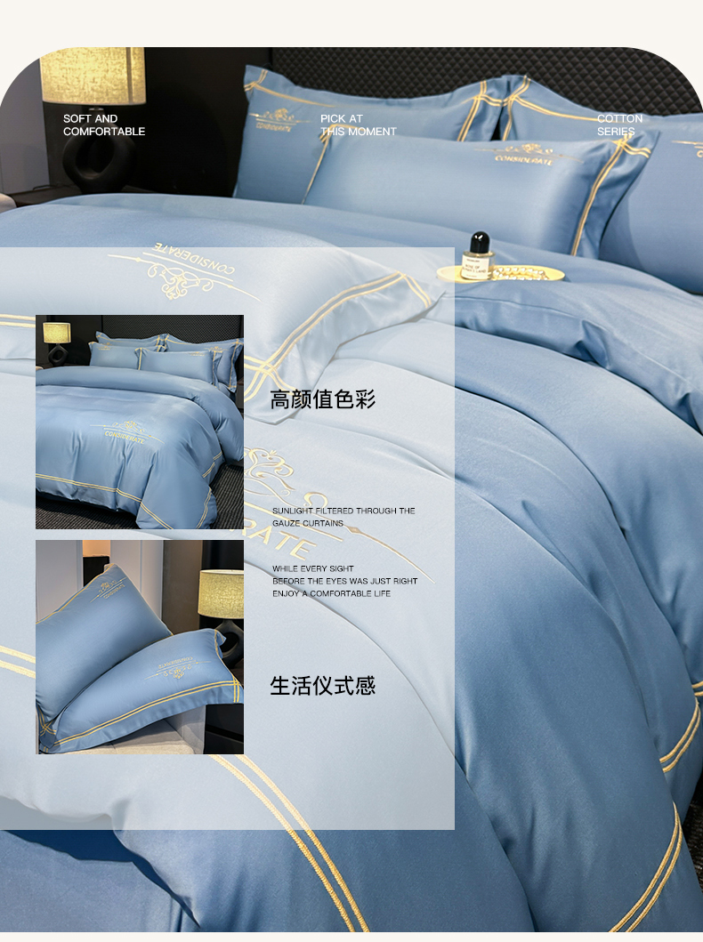 (总)绒掌柜 2025新款13376全棉纯棉刺绣四件套——版权产品(礼盒装品质含买家秀),高级粉,繁星蓝,奶白拼粉,奶昔白,香芋紫