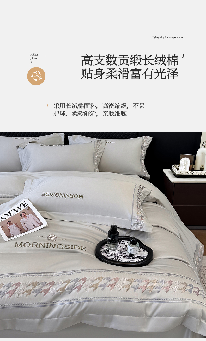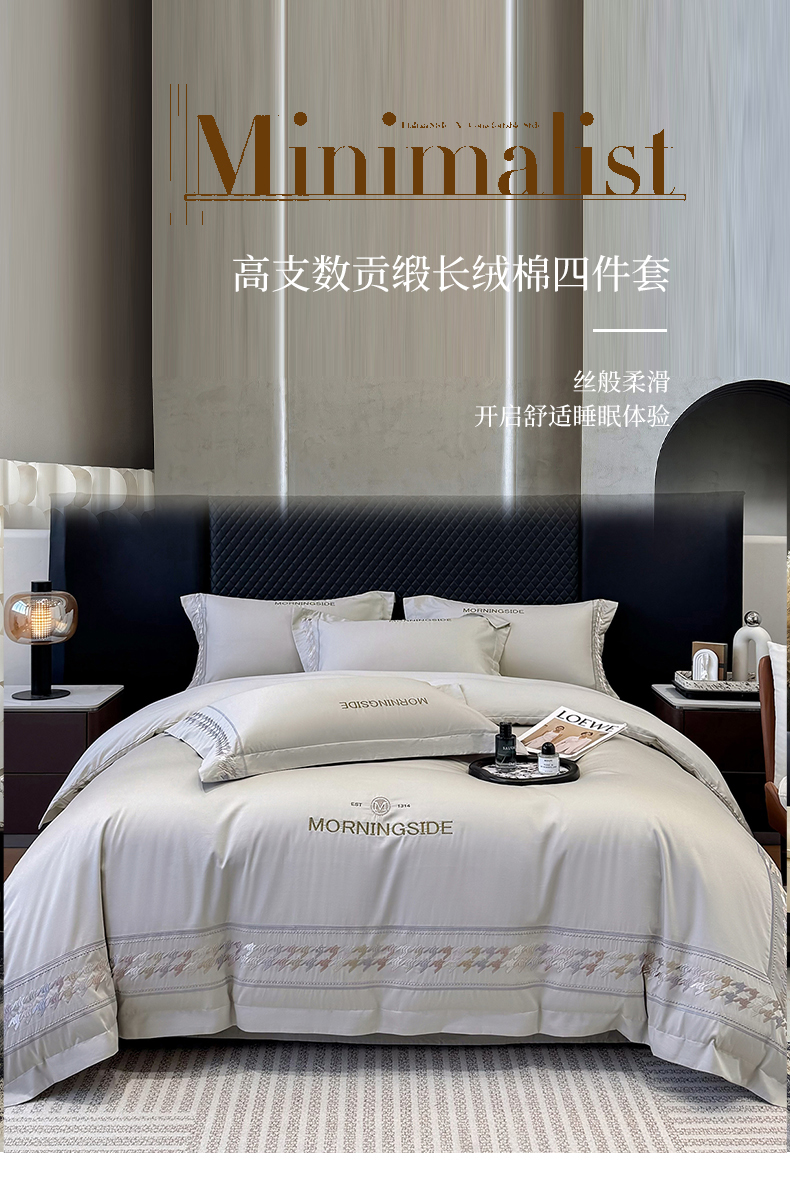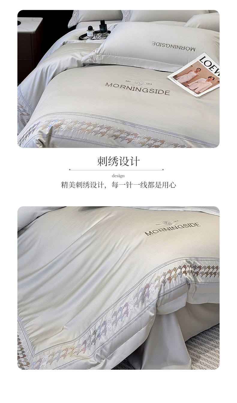 商品名称:苏美 2026春夏新款高档礼盒装50*50S贡缎长绒棉刺绣四件套100%纯棉全棉轻奢床品-千鸟格 千鸟格-灰