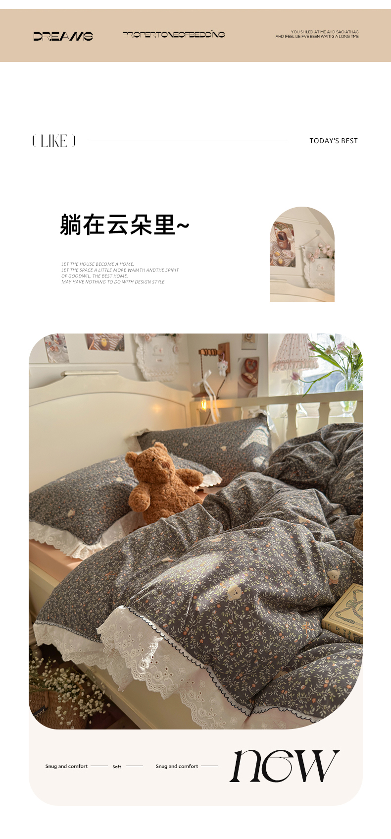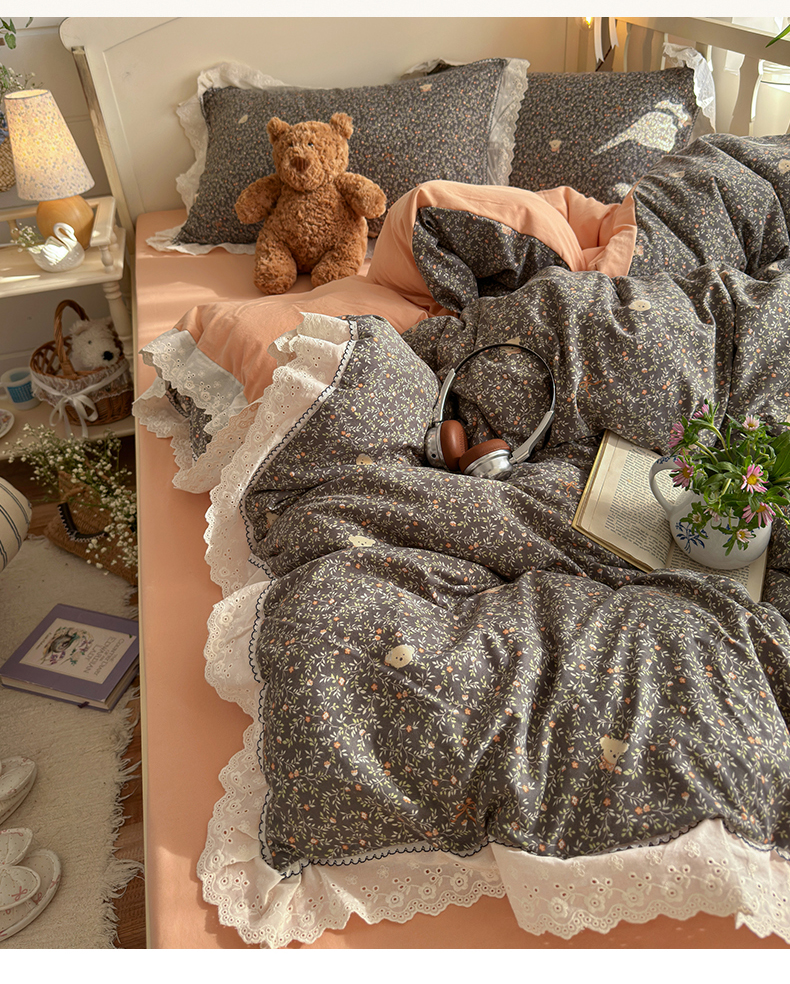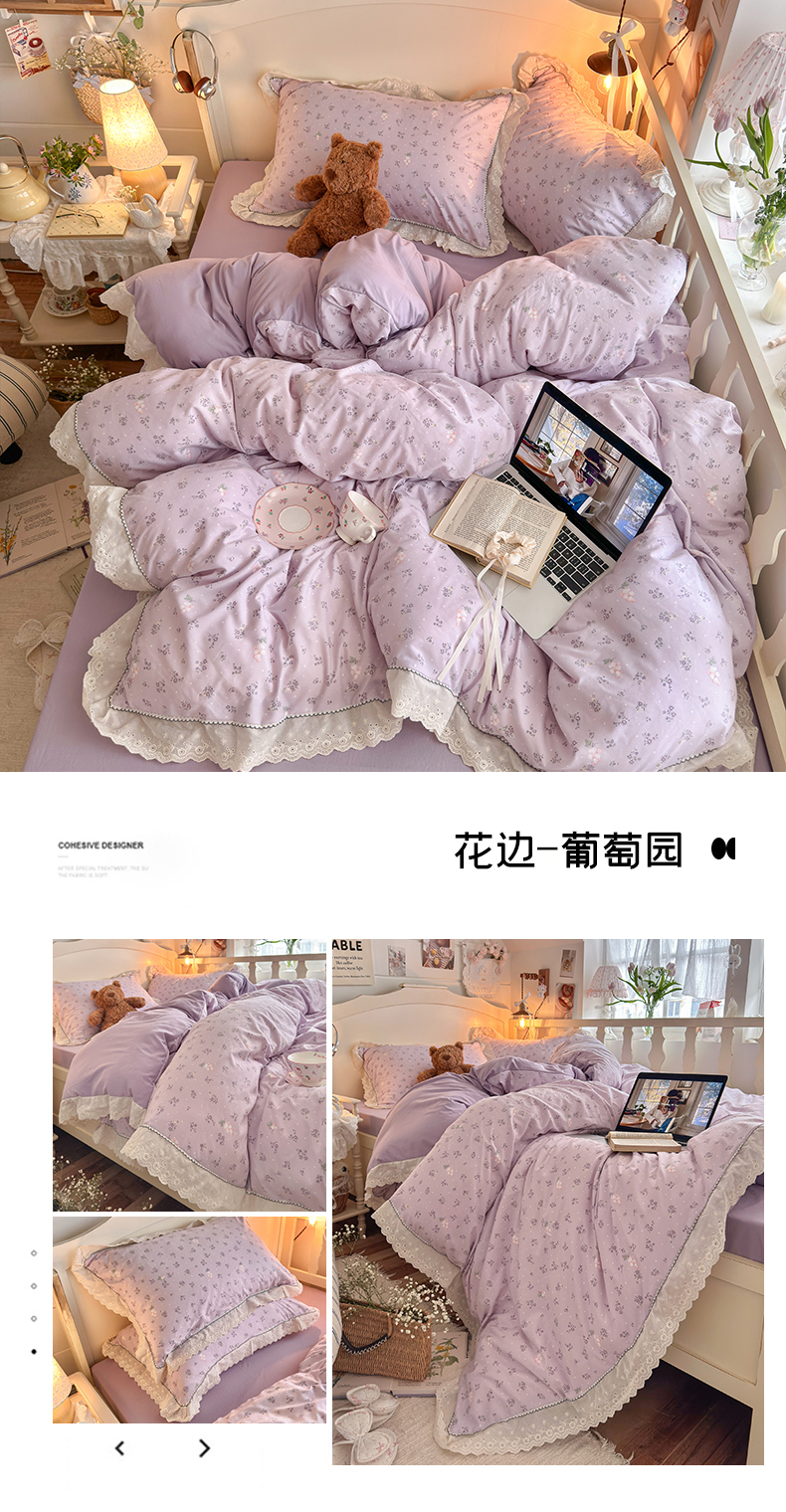 当前位置: 91家纺网 > 商品网购 > 床品套件 > 四件套 > 其它四件套 > 海岛哥哥 2026新款仿棉云柔纱韩版双花边四件套 花边-桔夏
