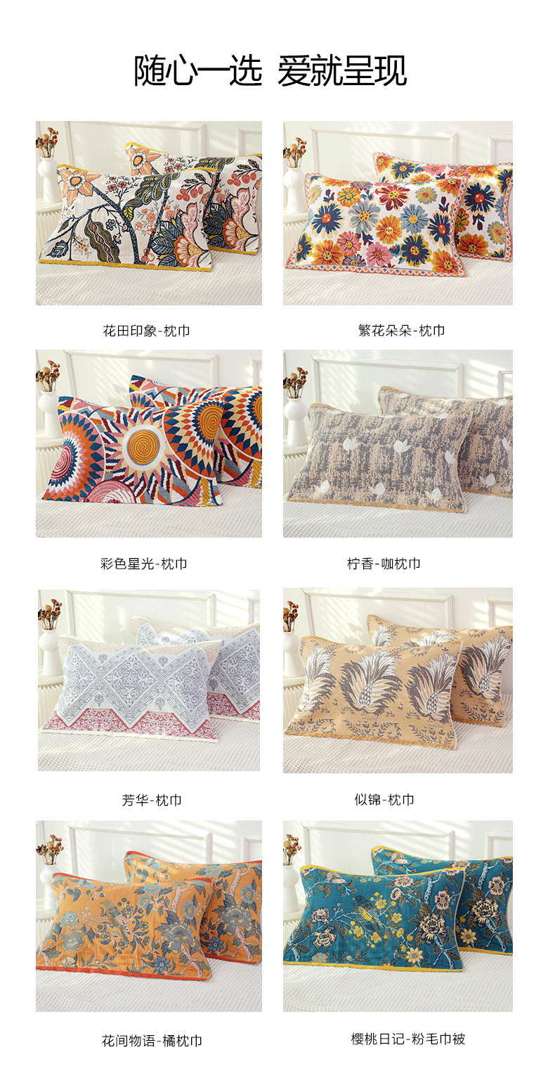 (总)朴尔家纺-毛巾被 2026新款彩棉国潮风全棉纯棉六层纱布枕巾,彩色星光-枕巾 52x78cm枕巾一对,繁花朵朵-枕巾 52x78cm枕巾一对,芳华-枕巾 52x78cm枕巾一对,花间物语-橘枕巾 52x78cm枕巾一对,花间物语-蓝枕巾 52x78cm枕巾一对,花田印象-枕巾 52x78cm枕巾一对,柠香-灰枕巾 52x78cm枕巾一对,柠香-咖枕巾 52x78cm枕巾一对,似锦-枕巾 52x78cm枕巾一对