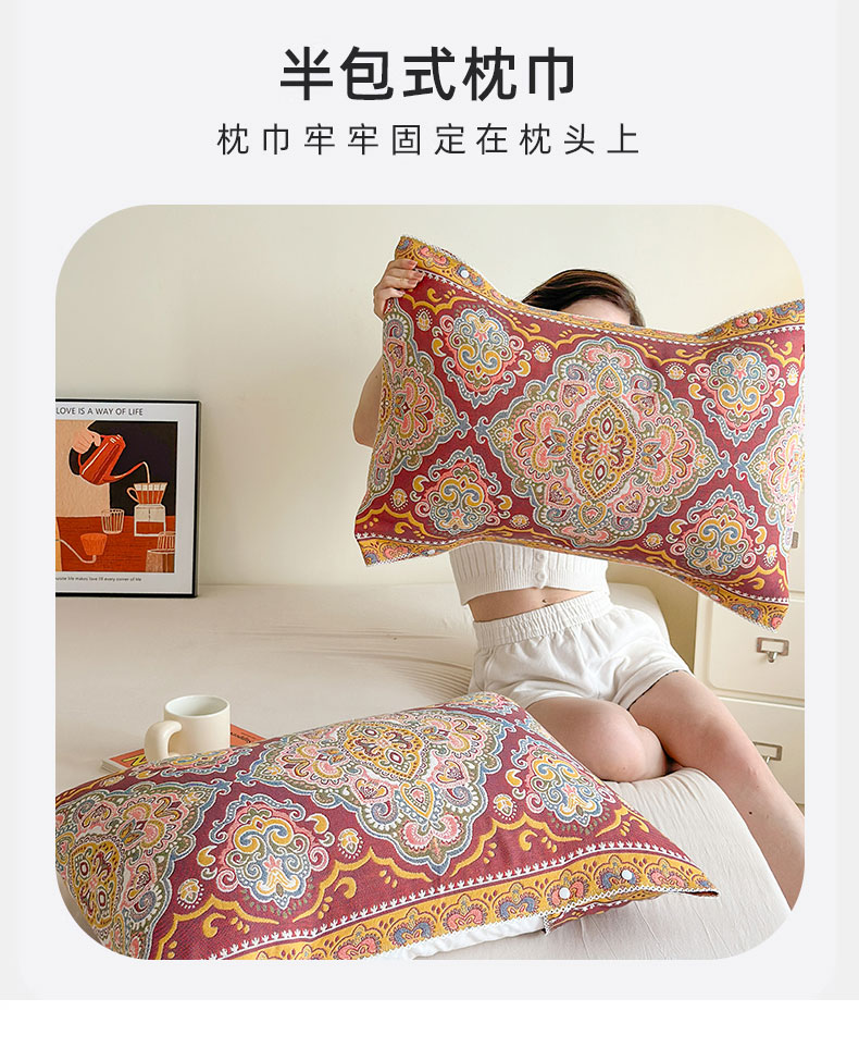 当前位置: 91家纺网 > 商品网购 > 床上用品 > 枕巾 > 朴尔家纺-毛巾被 2026新款半包可调节暗扣魔术全棉纯棉三层纱布枕巾 连枝花卉 53x110cm枕巾一对