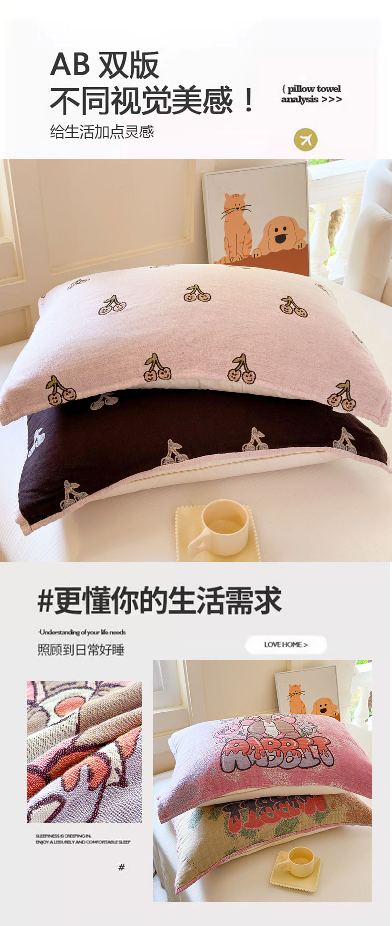 当前位置: 91家纺网 > 商品网购 > 床上用品 > 枕巾垫巾 > 朴尔家纺-毛巾被 2026新款全棉纯棉多柔AB版定位四层纱布枕巾 玫玫兔
