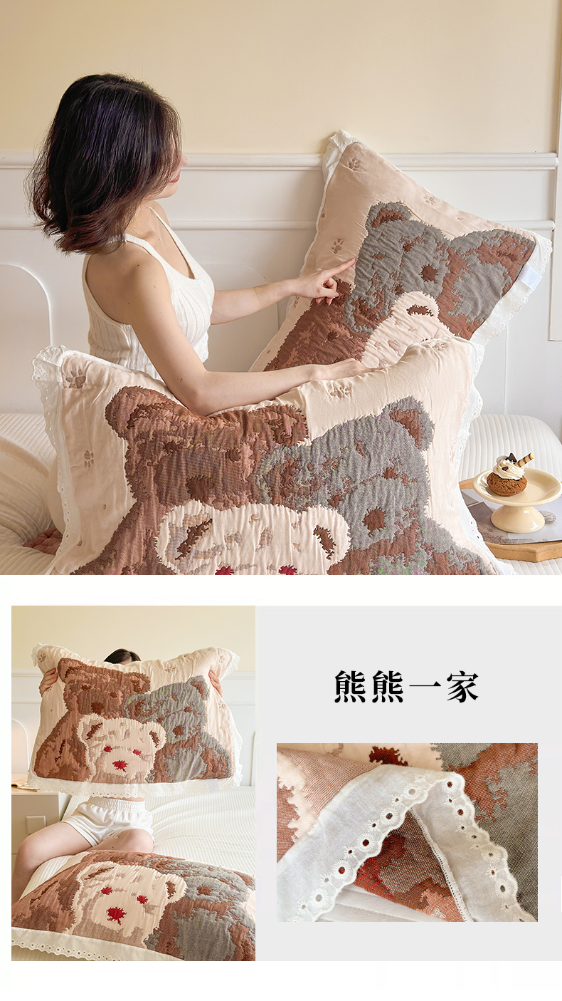 当前位置: 91家纺网 > 商品网购 > 床上用品 > 枕巾垫巾 > 朴尔家纺-毛巾被 2026新款韩版花边卡通水洗起皱纯棉六层纱布枕巾 溜溜呀
