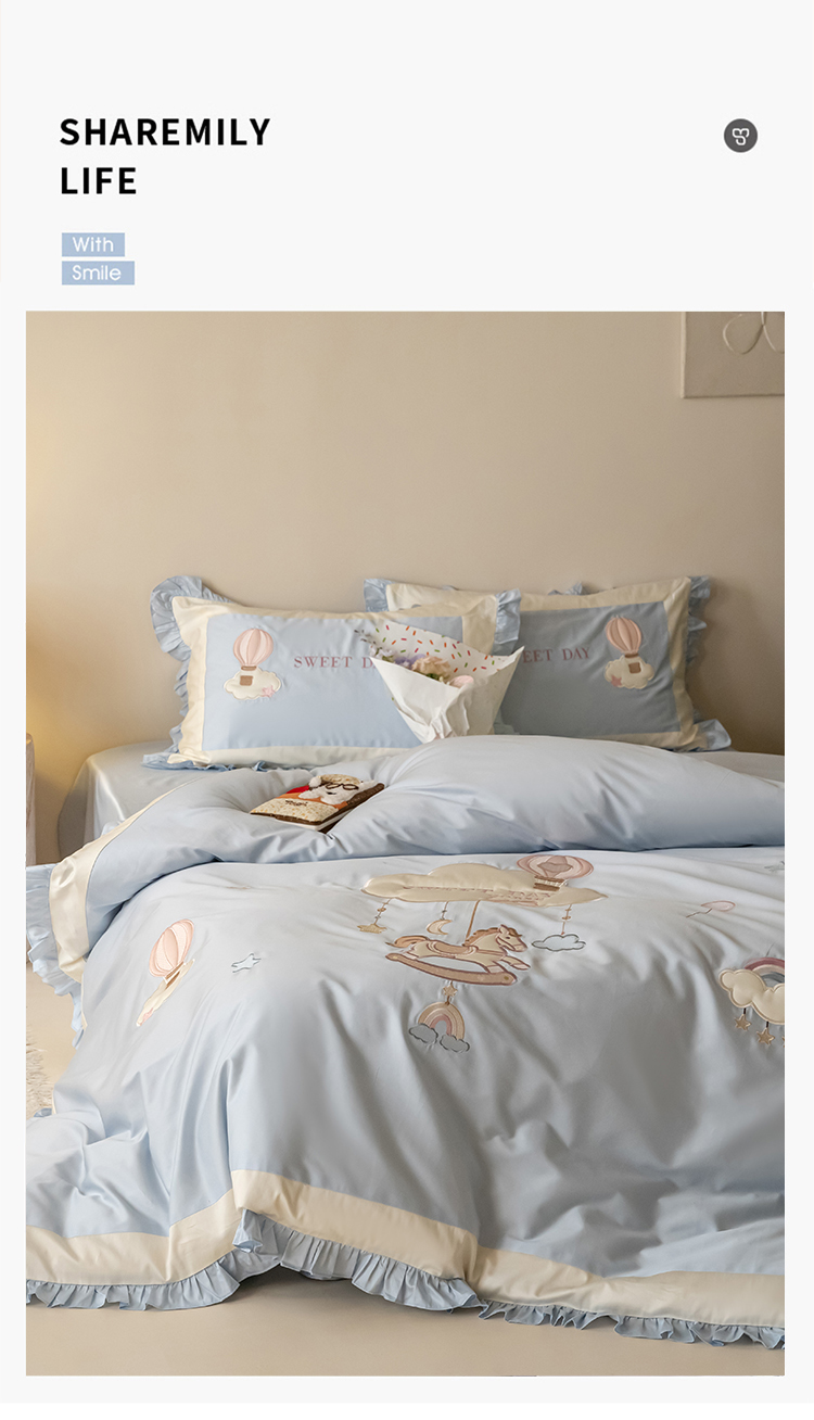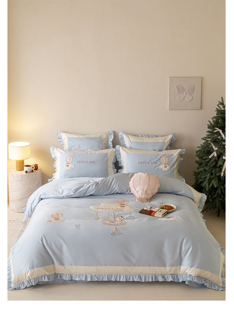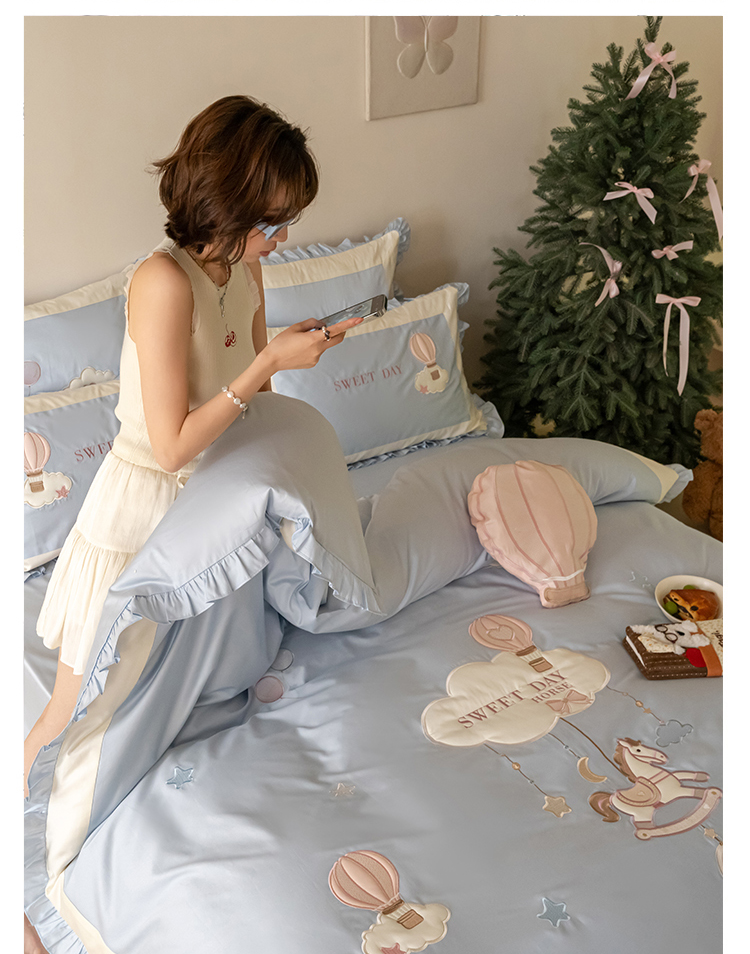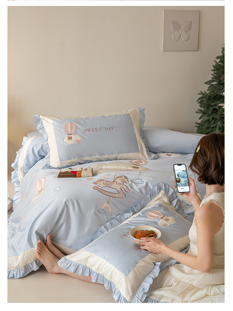 (总)西西家居 2026新款50s长绒棉纯棉四件套-晴空漫游记-蓝 会员-20元,商品控价:不得低于 线上(基础价):小号床单款408/ 标准床单款442 线上(超级立减):小号床单款368/ 标准床