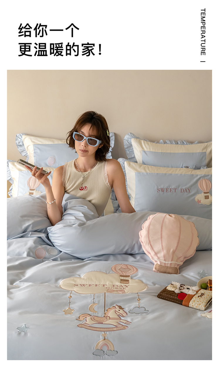(总)西西家居 2026新款50s长绒棉纯棉四件套-晴空漫游记-粉 会员-20元,商品控价:不得低于 线上(基础价):小号床单款408/ 标准床单款442 线上(超级立减):小号床单款368/ 标准床,晴空漫游记-粉