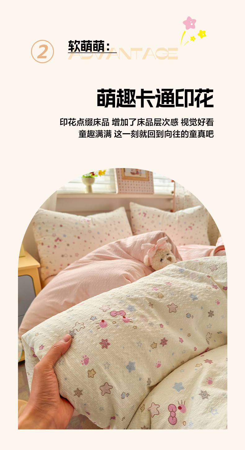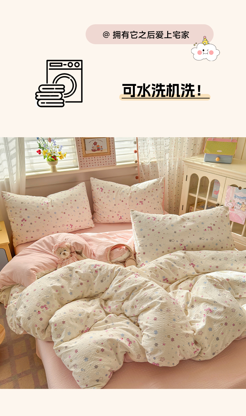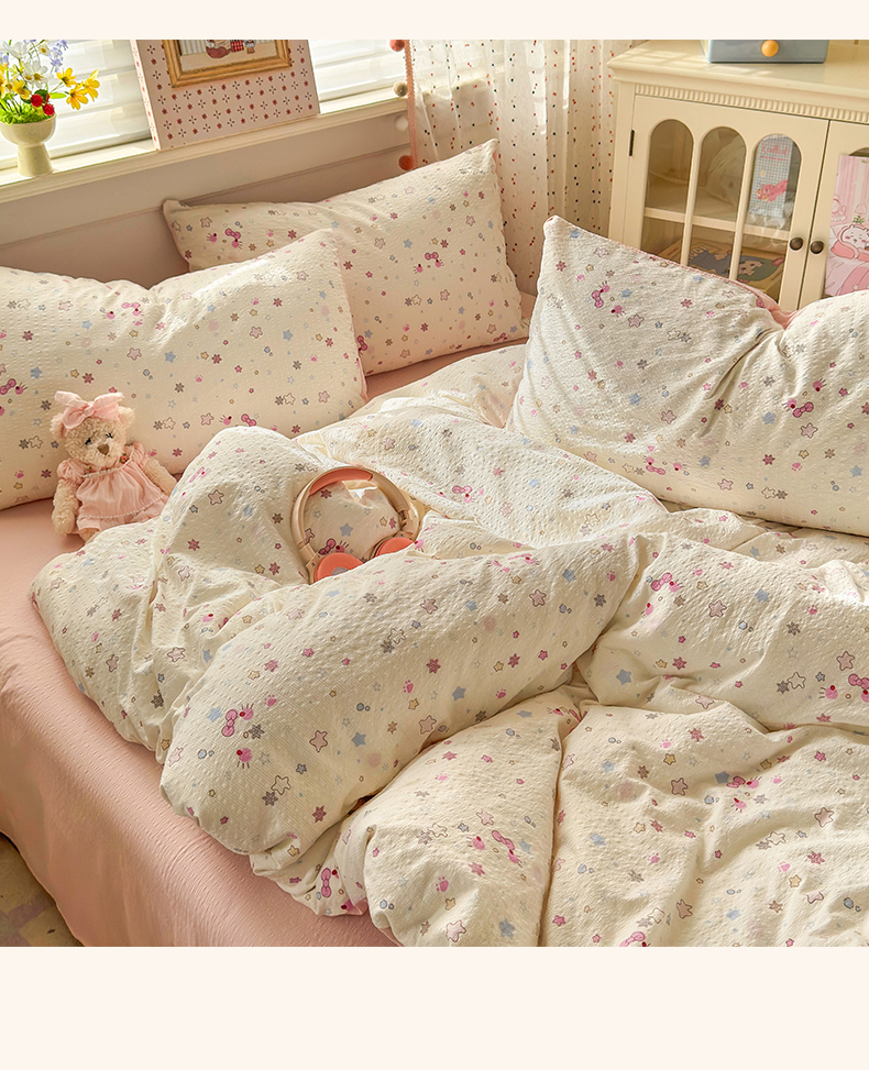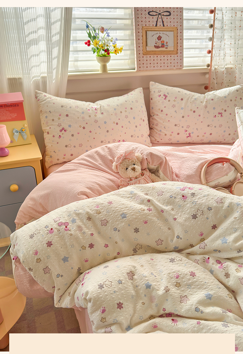 当前位置: 91家纺网 > 商品网购 > 床品套件 > 四件套 > 其它四件套 > 优承佳生活馆 2026年新款卡通小清新风格高克重超柔软糯泡芙双层纱面料三件套四件套单被套系列 星星kt