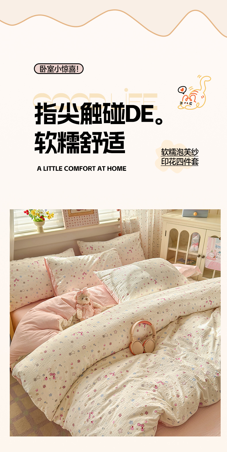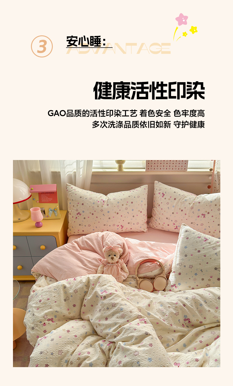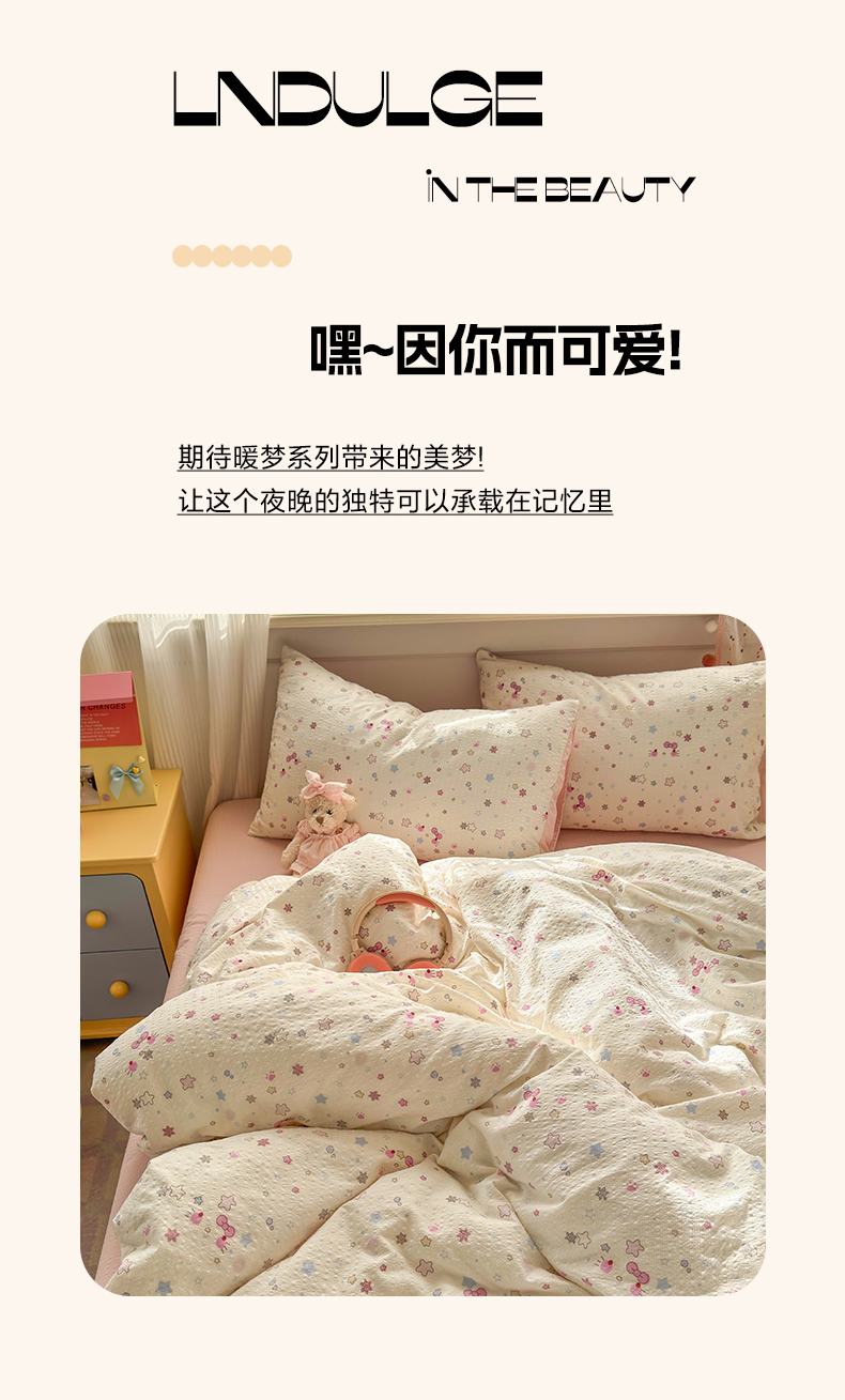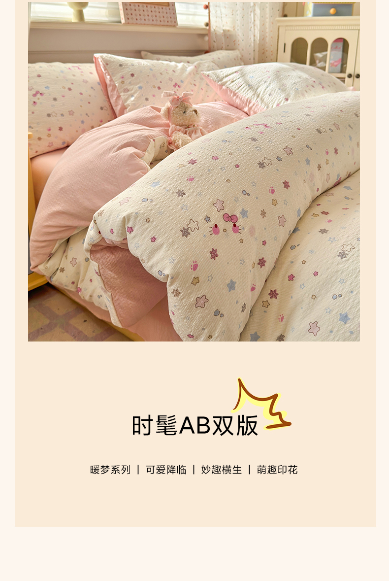 当前位置: 91家纺网 > 商品网购 > 床品套件 > 四件套 > 其它四件套 > 优承佳生活馆 2026年新款卡通小清新风格高克重超柔软糯泡芙双层纱面料三件套四件套单被套系列 星星kt