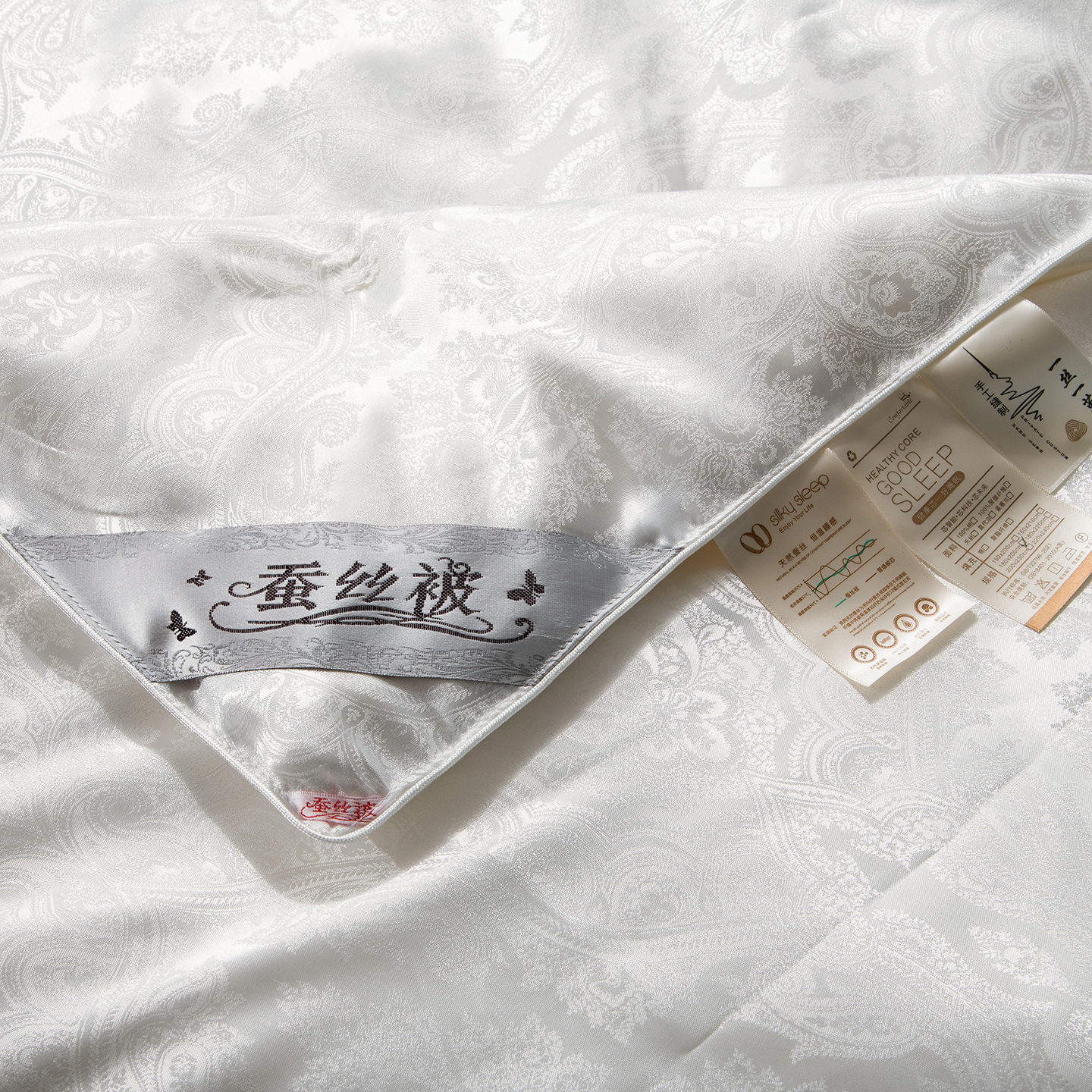 鑫田家纺 2026新款大提花100%蚕丝被柞蚕丝夏凉被春秋被冬被子母被礼品被夏被桑蚕丝被 皇冠-白色