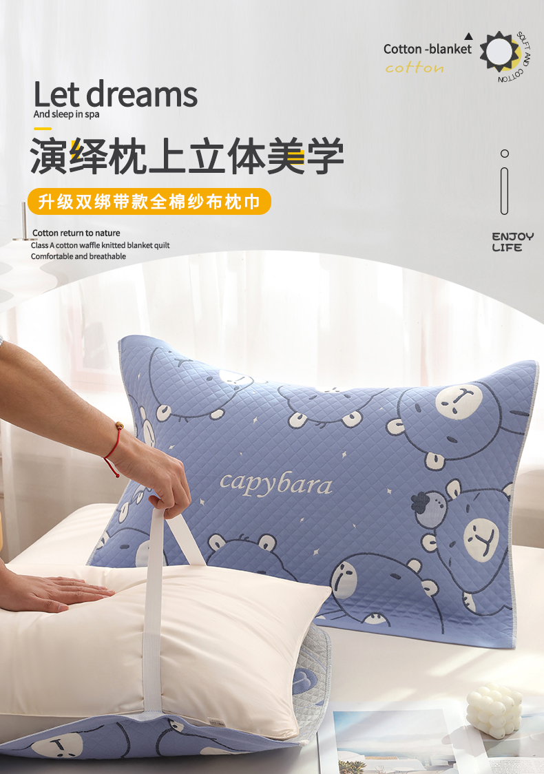 (总)娇兰毛巾 2026新款全棉抗菌纱布加双绑带枕巾