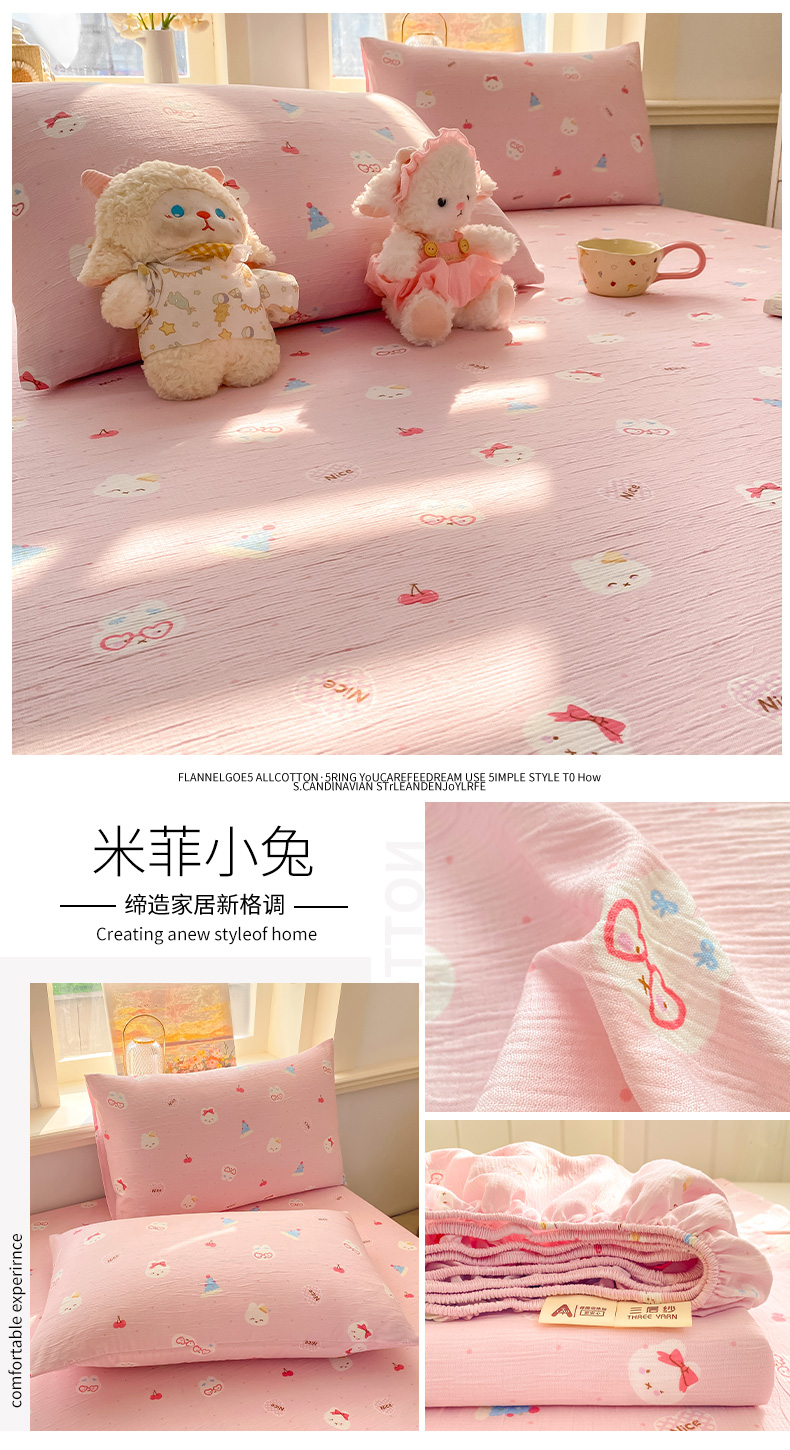 (总)眠势力 2026新款双层纱床笠单件云感皱皱纱床罩三件套床垫保护套,紫雾花汀,缤纷彩结,彩色心情,草莓蝴蝶结,春野织梦,哈喽猫咪,海盐奶猫,花漾草莓,金蝶逐影,萌兔乐园,青樱兔语,向云端,星梦甜心,幸运小马,紫芋南瓜,组合图 仅供参考