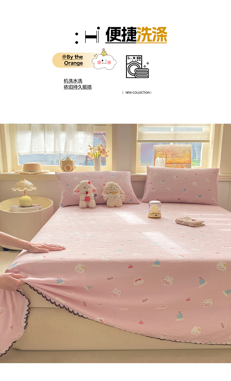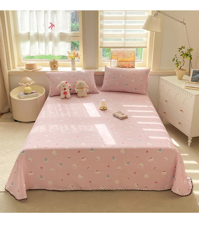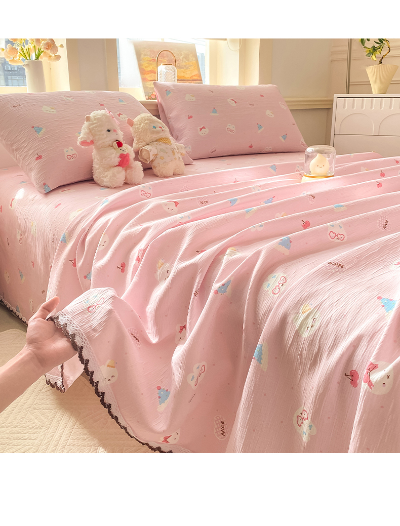 • 91家纺网 家纺一手货源 找家纺 眠势力 2026新款皱皱三层纱床单三件套云朵学生宿舍床单花边款四季通用 米菲小兔【三层皱皱纱花边床单】