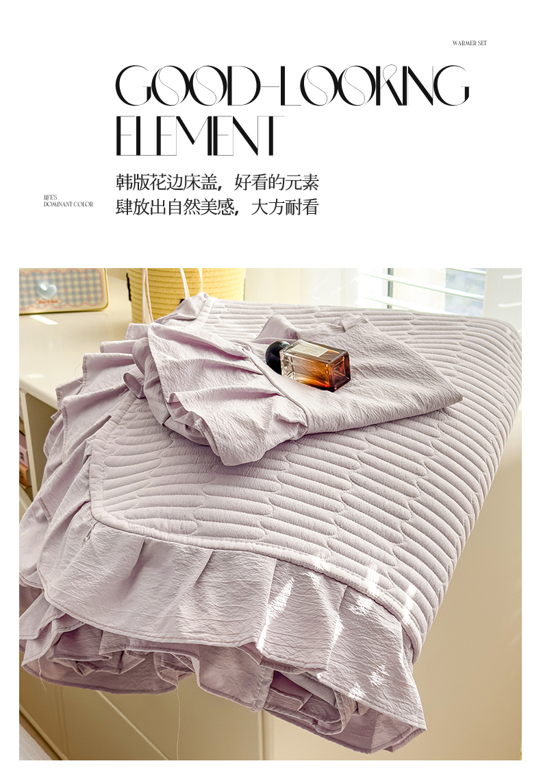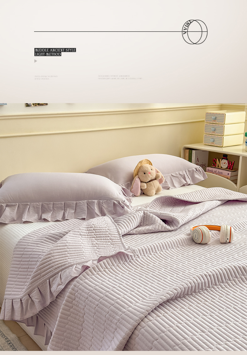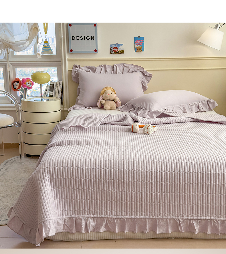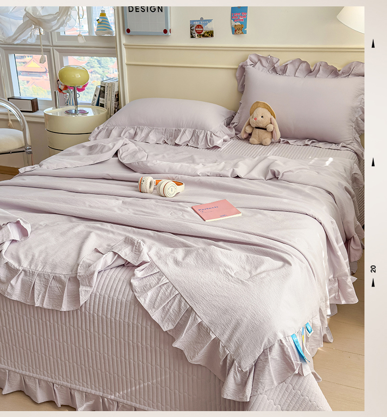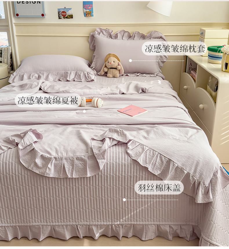 • 91家纺网 家纺一手货源 找家纺 兄弟坊 2026新款韩版凉感皱皱绵花边夏被床盖四件套 凉感皱皱绵-香芋紫