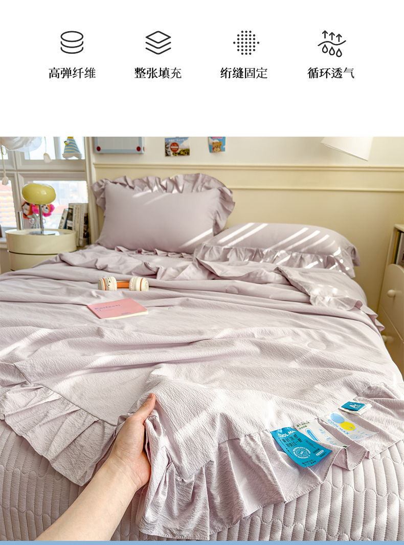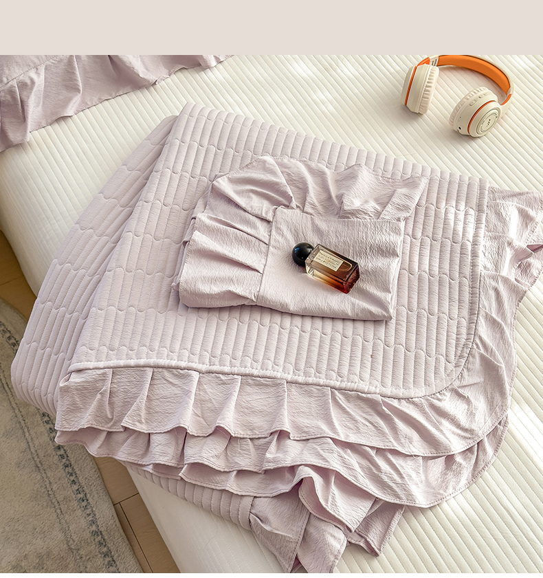 当前位置: 91家纺网 > 商品网购 > 床上用品 > 床盖 > 兄弟坊 2026新款韩版凉感皱皱绵花边夏被床盖四件套 凉感皱皱绵-香芋紫