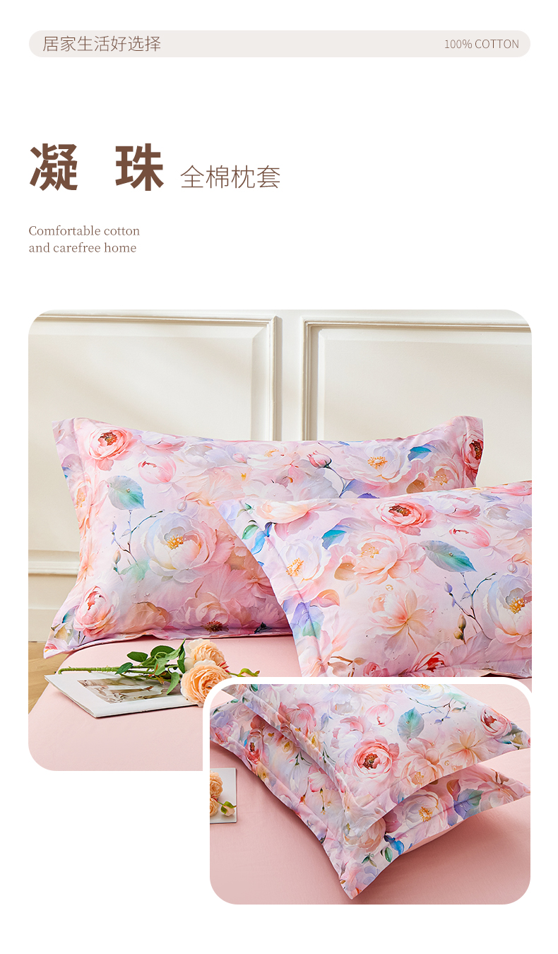 商品名称:元元家居(元元被业) 2026新款全棉13372套件及单品【印花款】-单枕套 芙尔