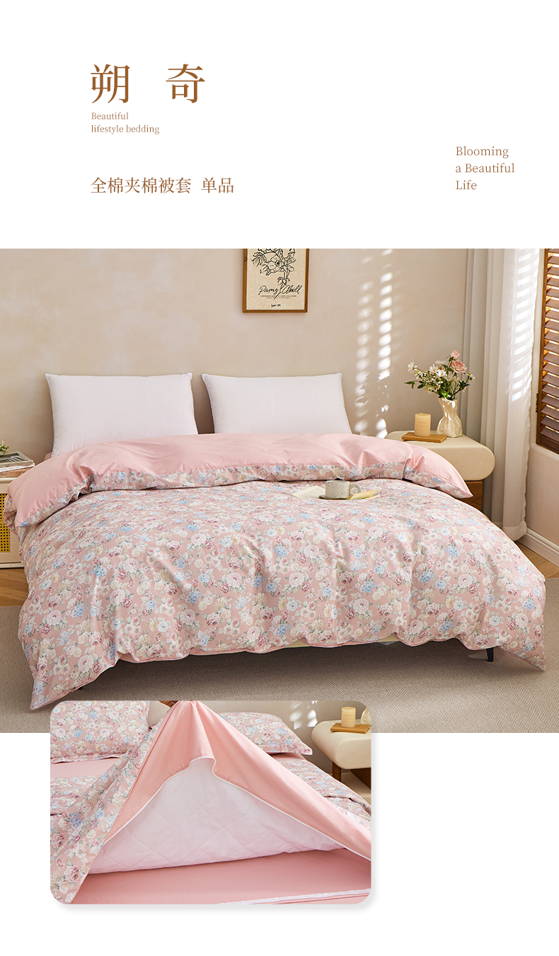 商品名称:元元家居(元元被业) 2026新款全棉13372套件及单品【印花款】-夹棉被套 秀丽