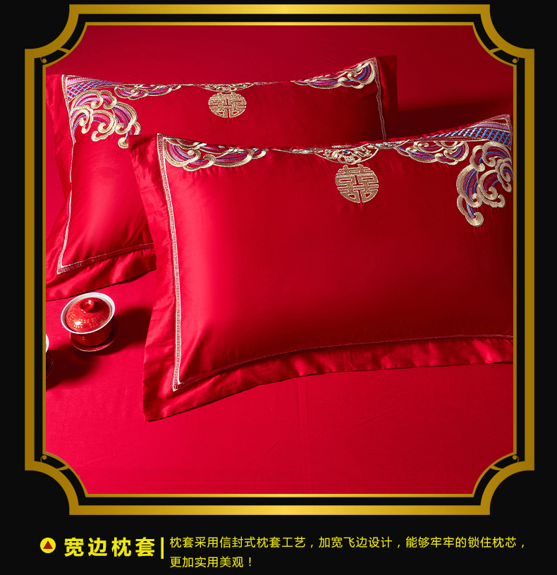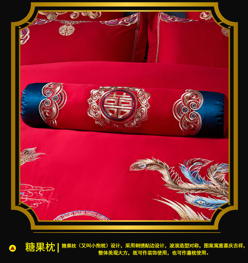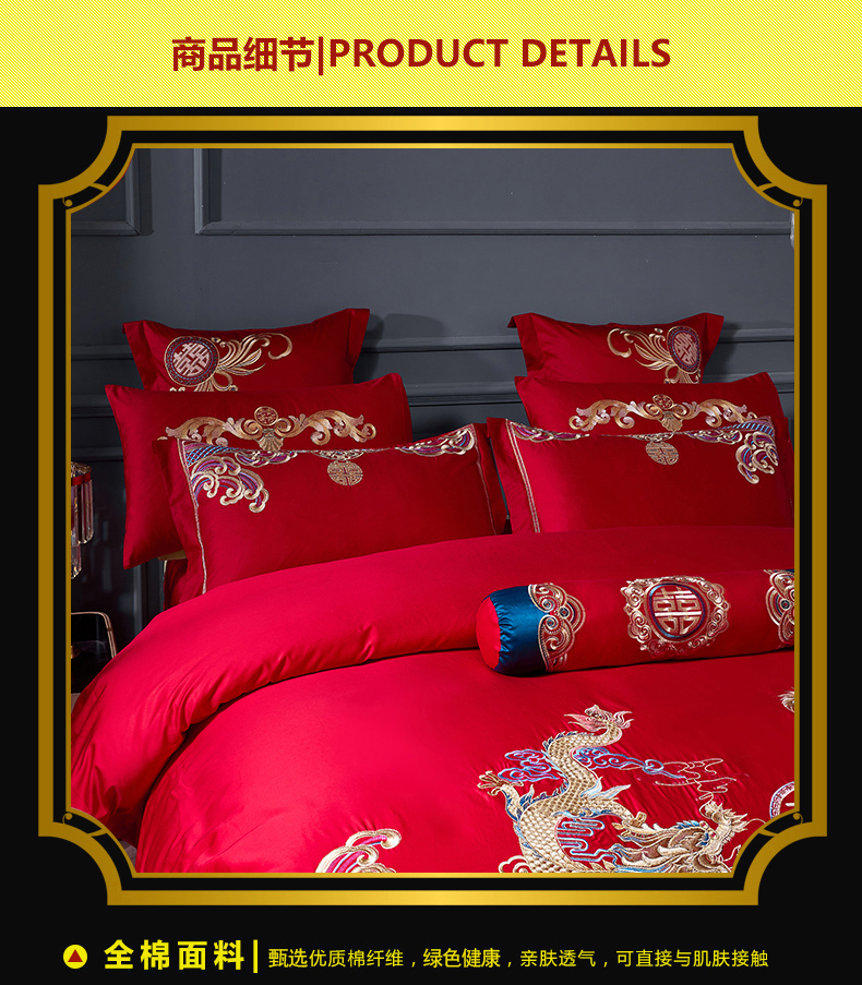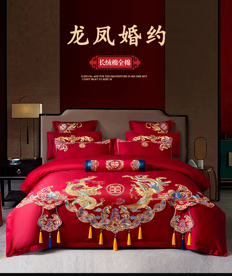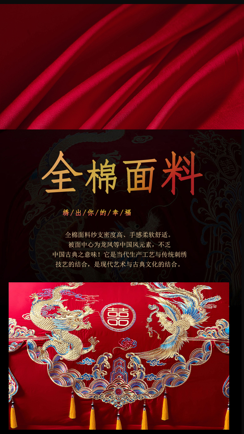 当前位置: 91家纺网 > 商品网购 > 床品套件 > 四件套 > 婚庆四件套 > 慕她家纺 2026年全棉纯棉婚庆四件套大红色刺绣结床上用品(床盖款加40) 龙凤婚约