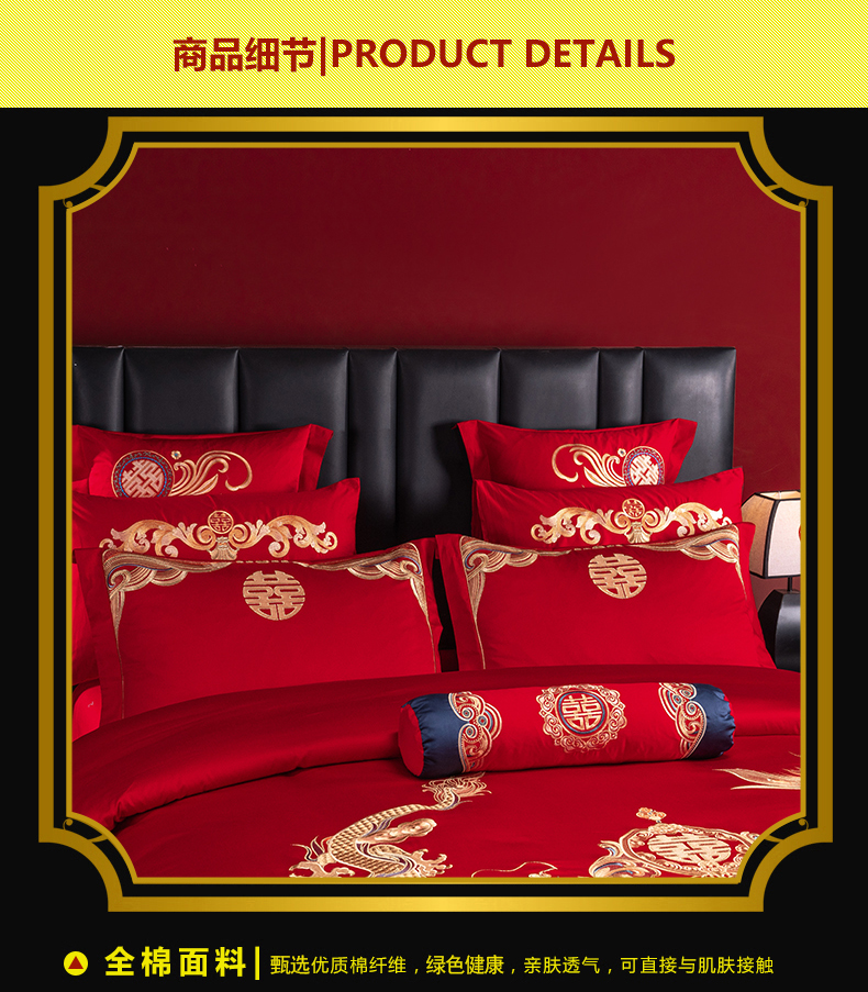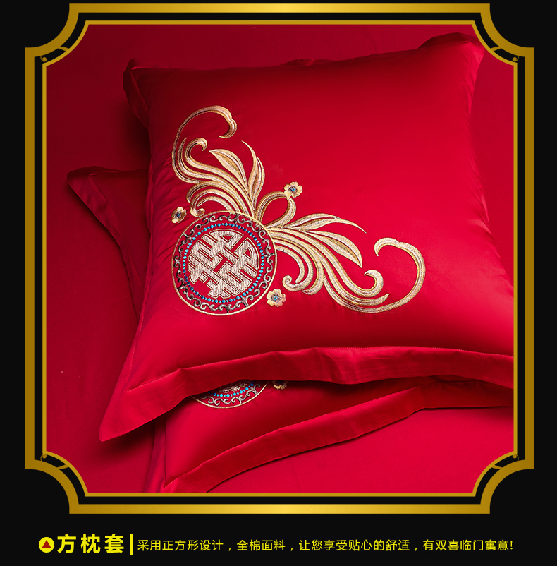 当前位置: 91家纺网 > 商品网购 > 床品套件 > 四件套 > 婚庆四件套 > 慕她家纺 2026年全棉纯棉婚庆四件套大红色刺绣结床上用品(床盖款加40) 鸾凤和鸣