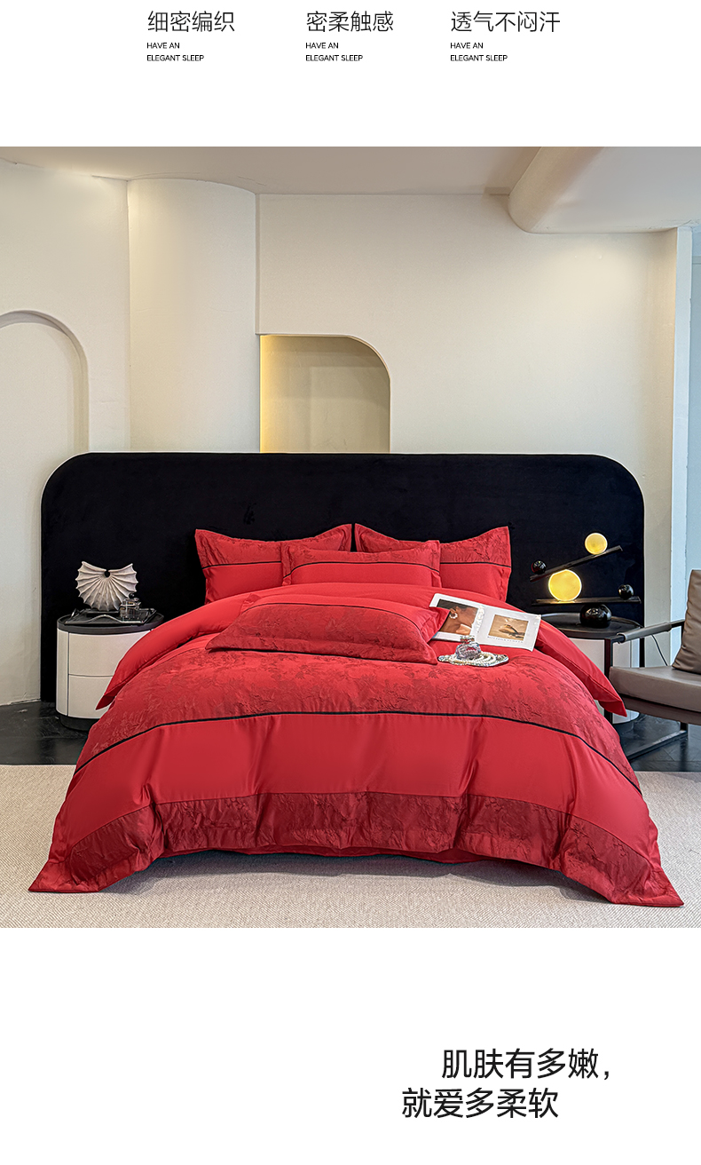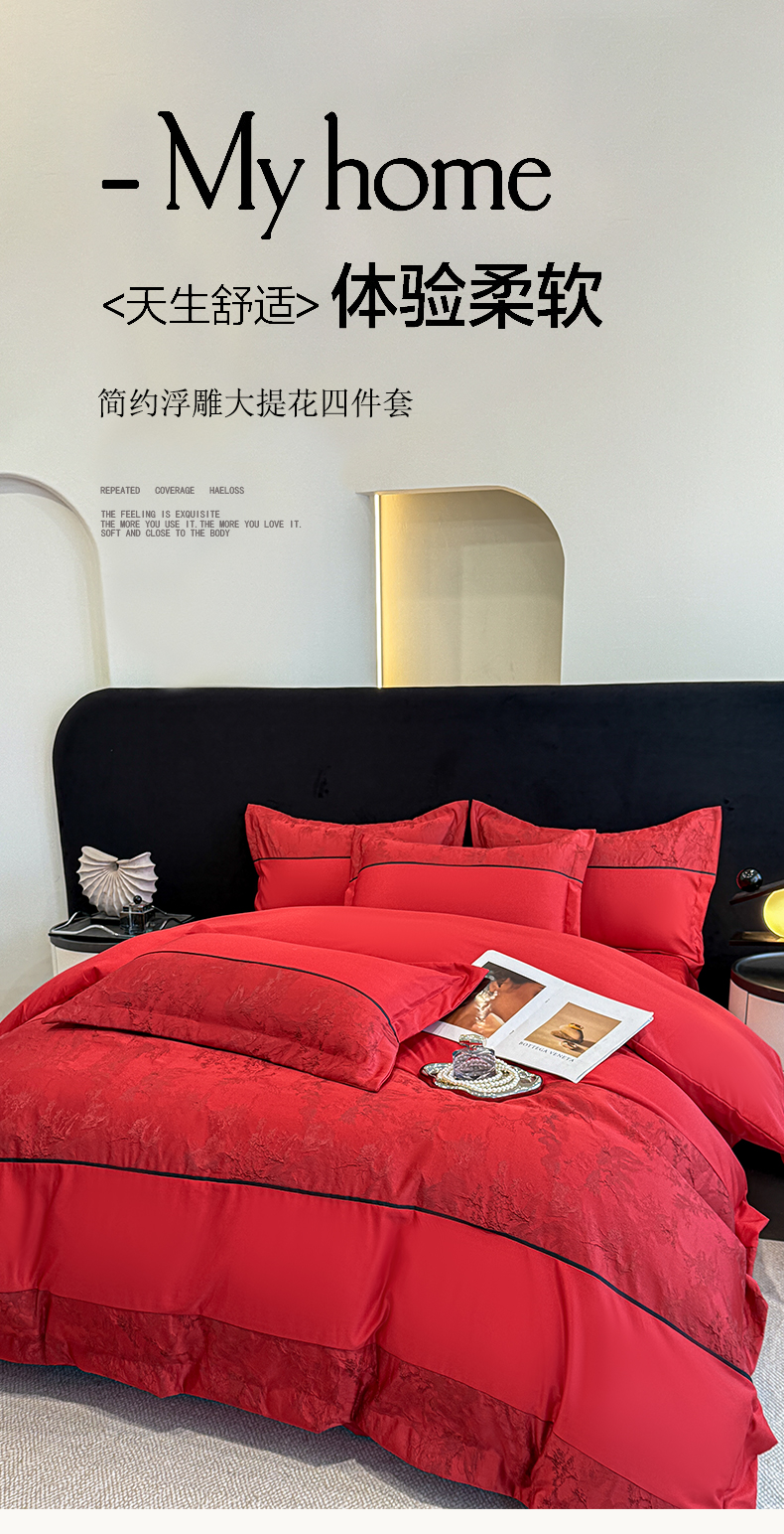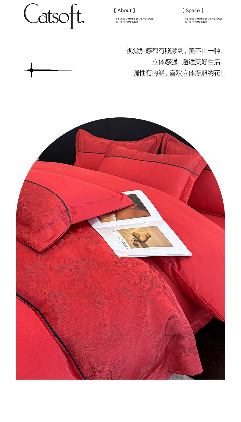 商品名称:狂想家 2026新款简约浮雕大提花四件套 爱恋红