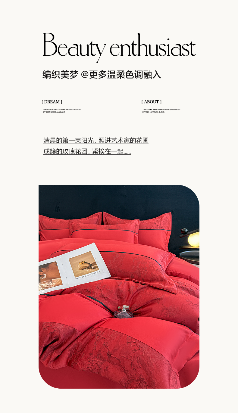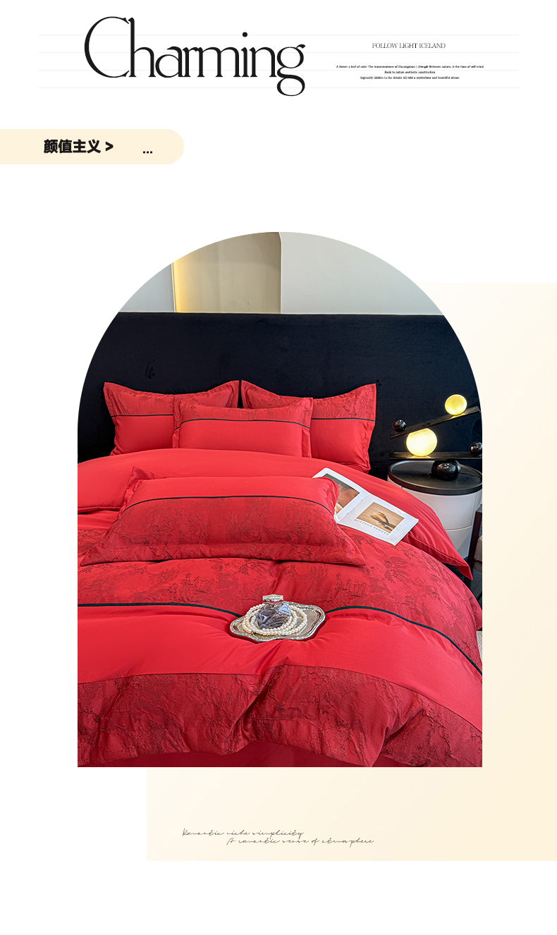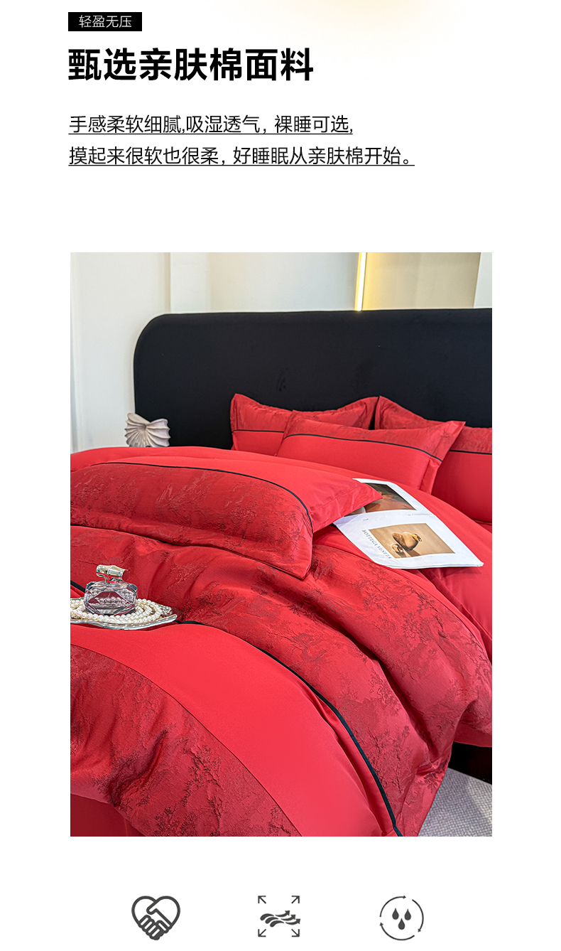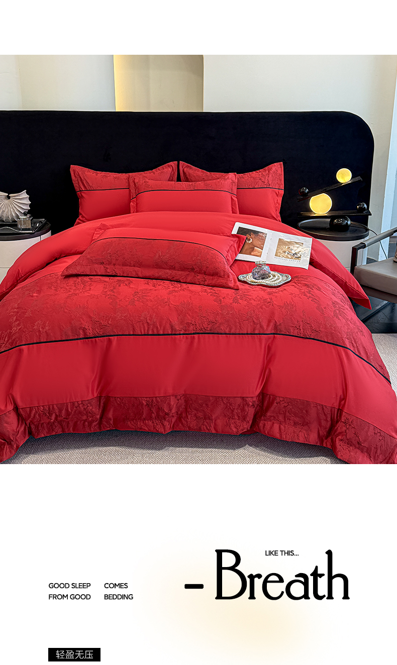 商品名称:狂想家 2026新款简约浮雕大提花四件套 爱恋红