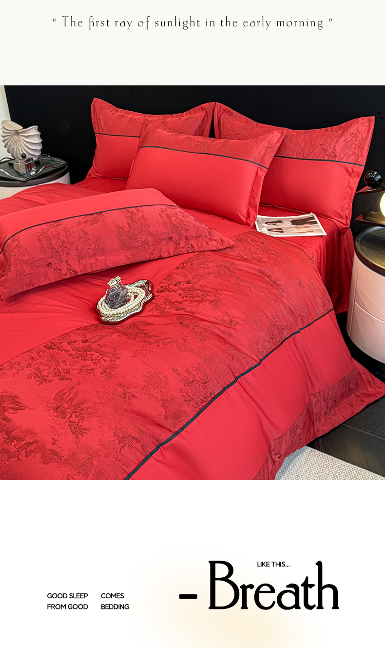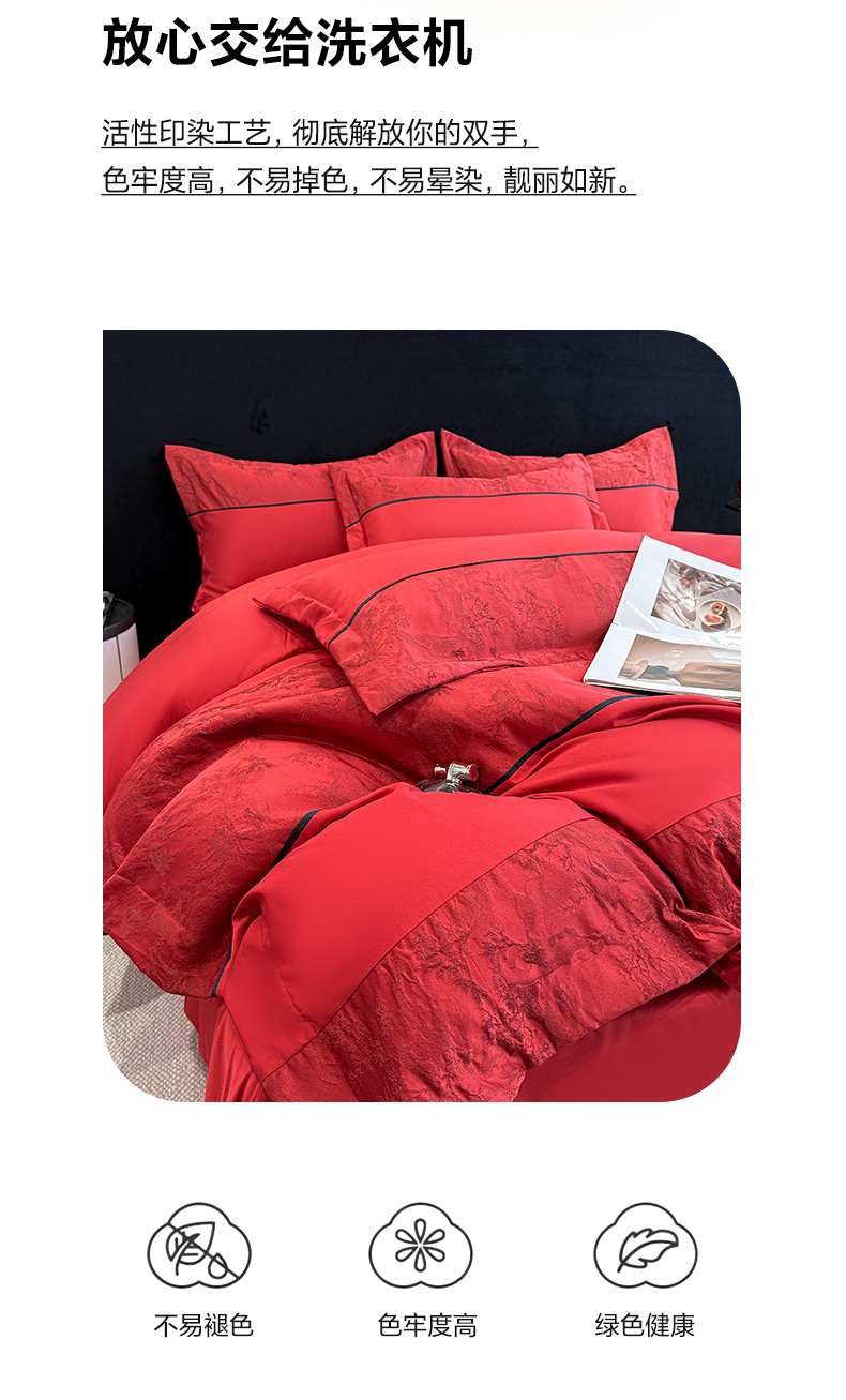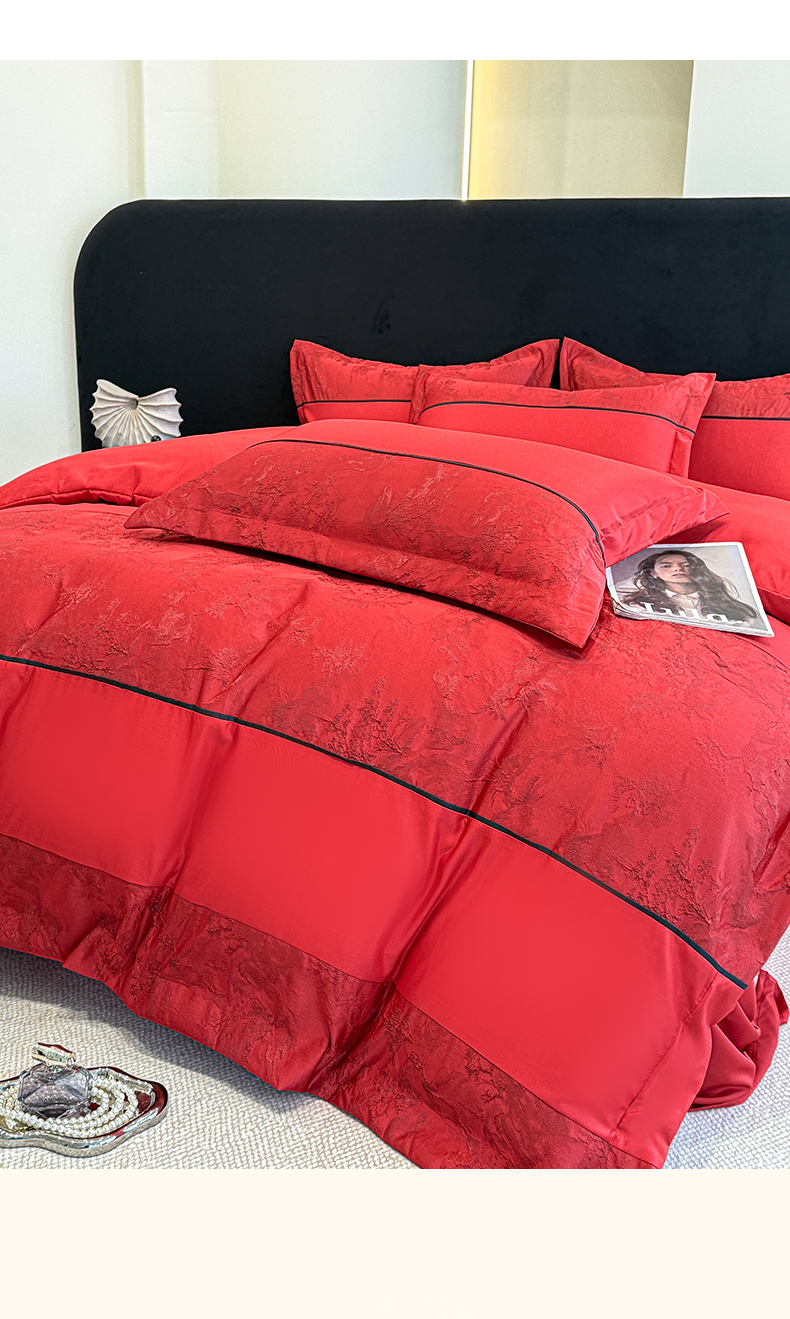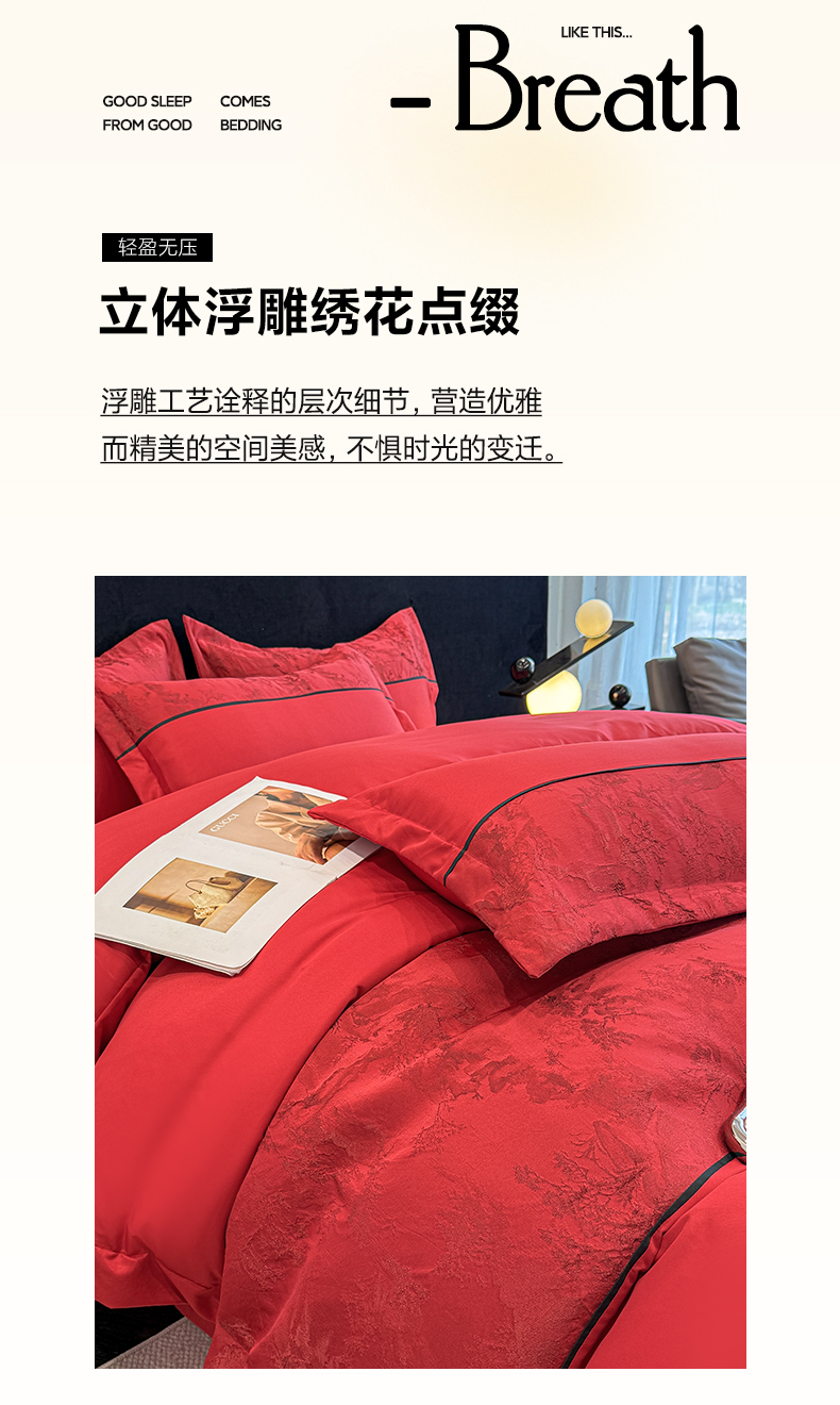 狂想家 2026新款简约浮雕大提花四件套 爱恋红