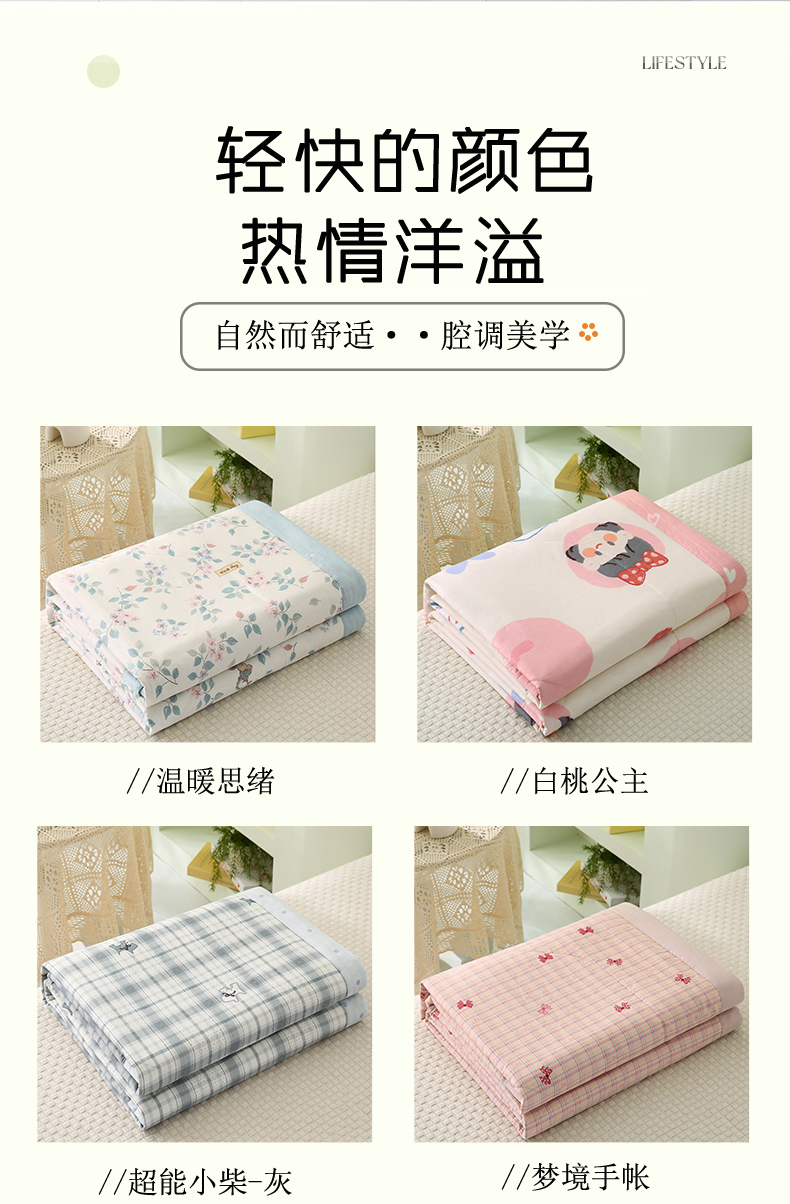 (总)米萝家居 2026新款全棉夏凉被纯棉空调被印花夏被,青柠薄荷,白桃公主,半亩花田,碧叶粉黛,草莓粉兔,超能小柴-灰,花间集-米,可爱熊猫,快乐时光,蓝调格韵,绿蔓,梦境手帐,梦入芬芳,浅花悠悠,青岚语,轻婉花语,少女日记,碎花细雨,探索星球,糖果幼儿园,温暖思绪,阳光花语,叶语菲菲,依美莎,樱桃女孩,悠然夏日