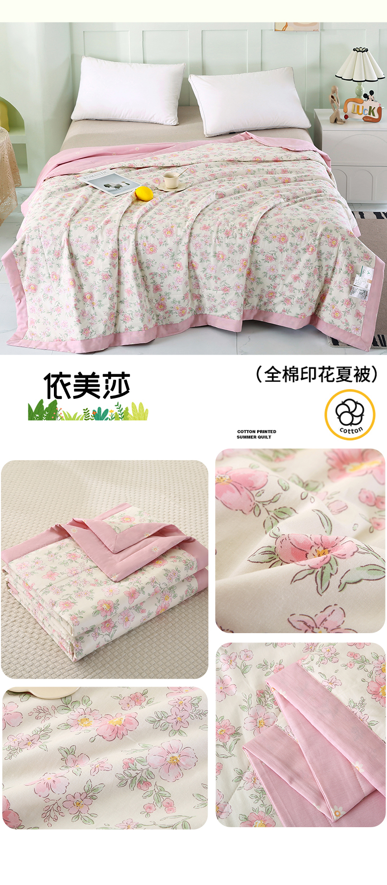 商品名称:米萝家居 2026新款全棉夏凉被纯棉空调被印花夏被 依美莎