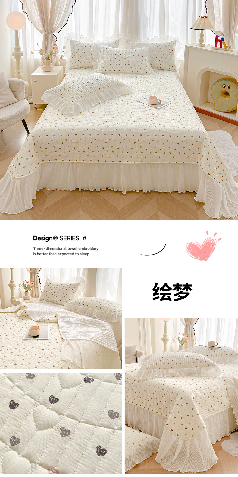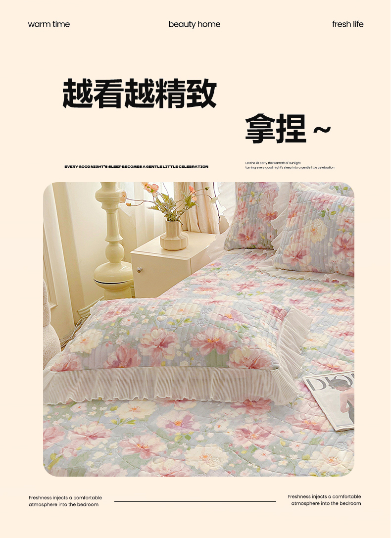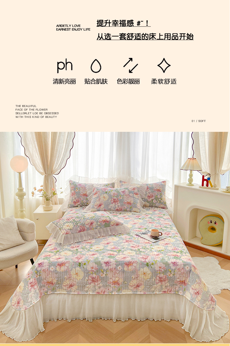 (总)宜凡家纺 2026新款全棉印花公主风夹棉床盖三件套,逐梦,假日,可颂,梦娜,木槿,乔屿