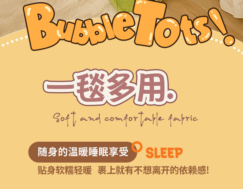(总)潮邦创意家居 2026新款星眠绒单层双面球毯-BubbleTots巴波布布独家授权-第一批 控价:100*150cm不得低于69元 150*200cm不得低于89元,巴波萌团,巴波桃桃,巴波众萌,巴啵茨茨