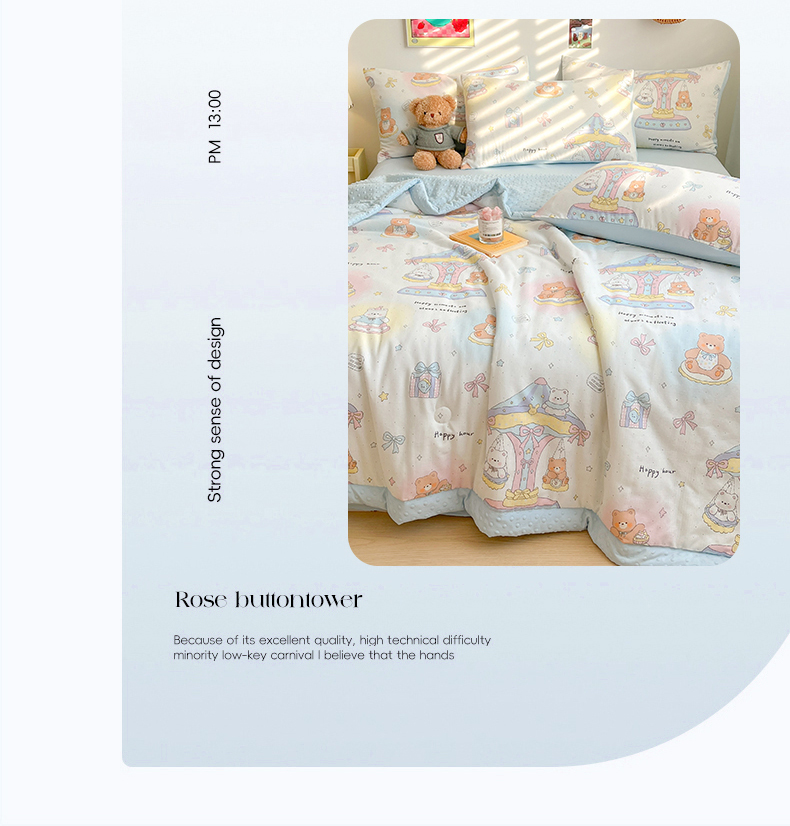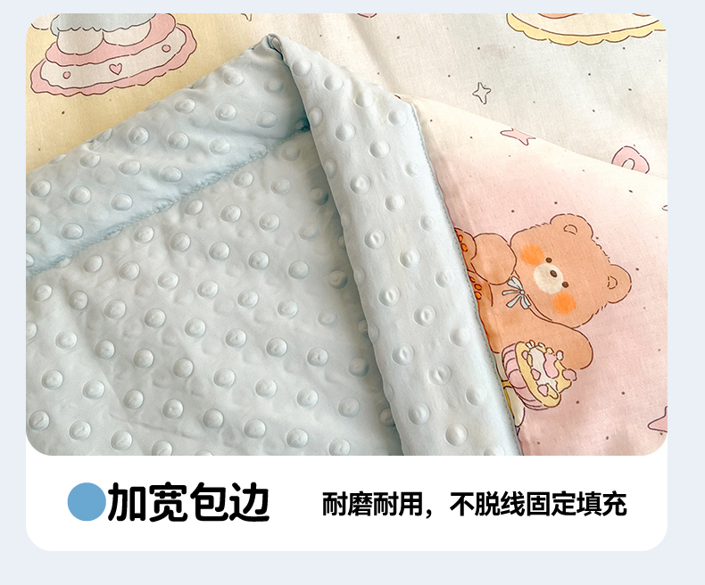 • 91家纺网 家纺一手货源 找家纺 盛秋家纺 2026新款A类水洗棉豆豆夏被系列二 小熊时光+天空蓝
