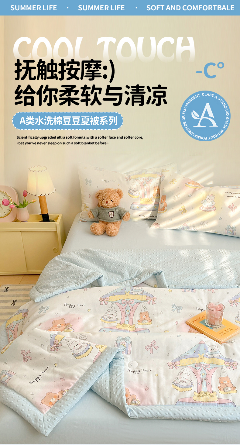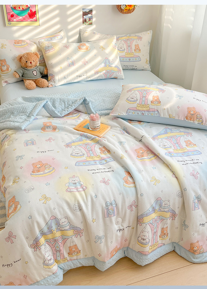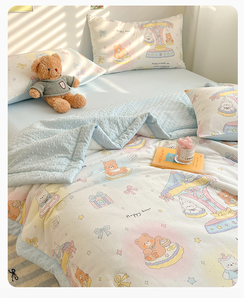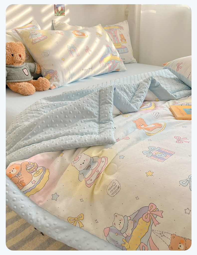 盛秋家纺 2026新款A类水洗棉豆豆夏被系列二 小熊时光+天空蓝