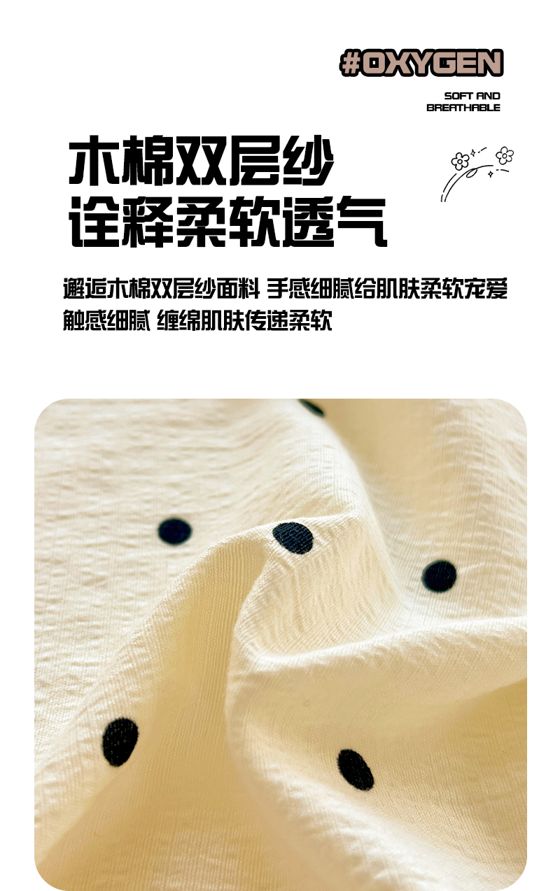 • 91家纺网 家纺一手货源 找家纺 优选良品 2025新款ins小清新木棉双层纱印花床笠床垫保护罩枕套三件套 小点点