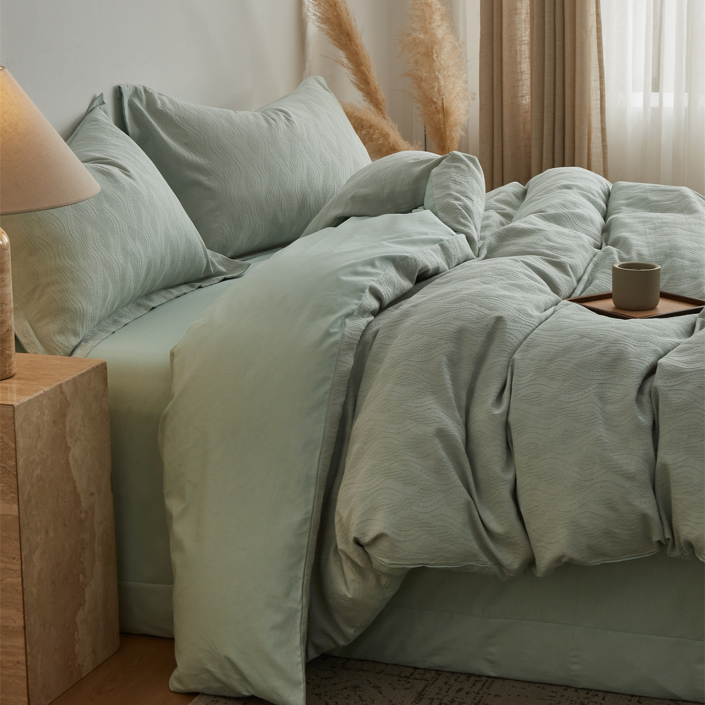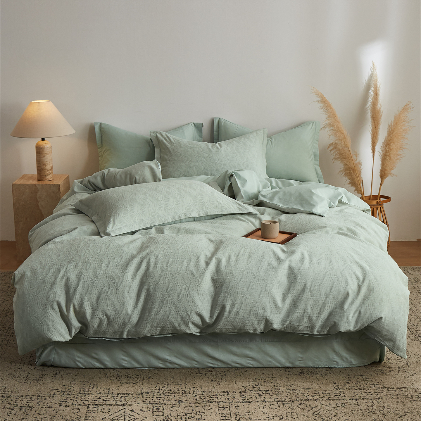 顾家家居 2026新款AB面全棉厚织提花四件套 素简-明绿