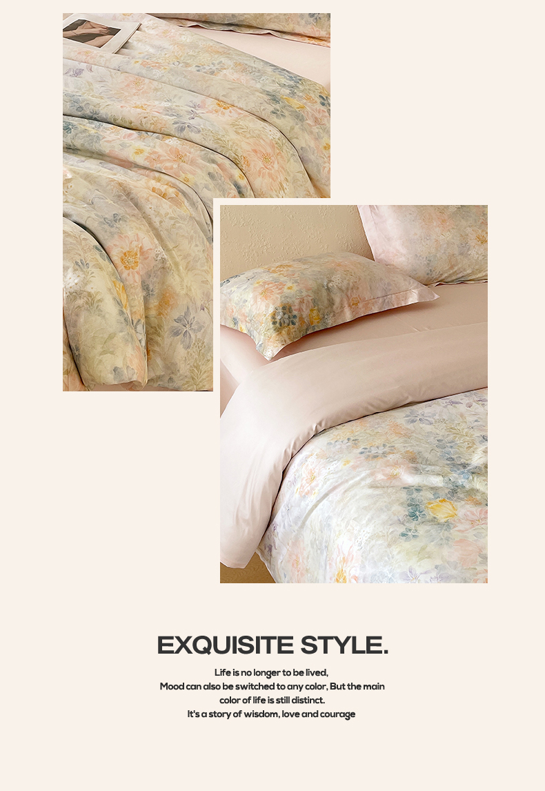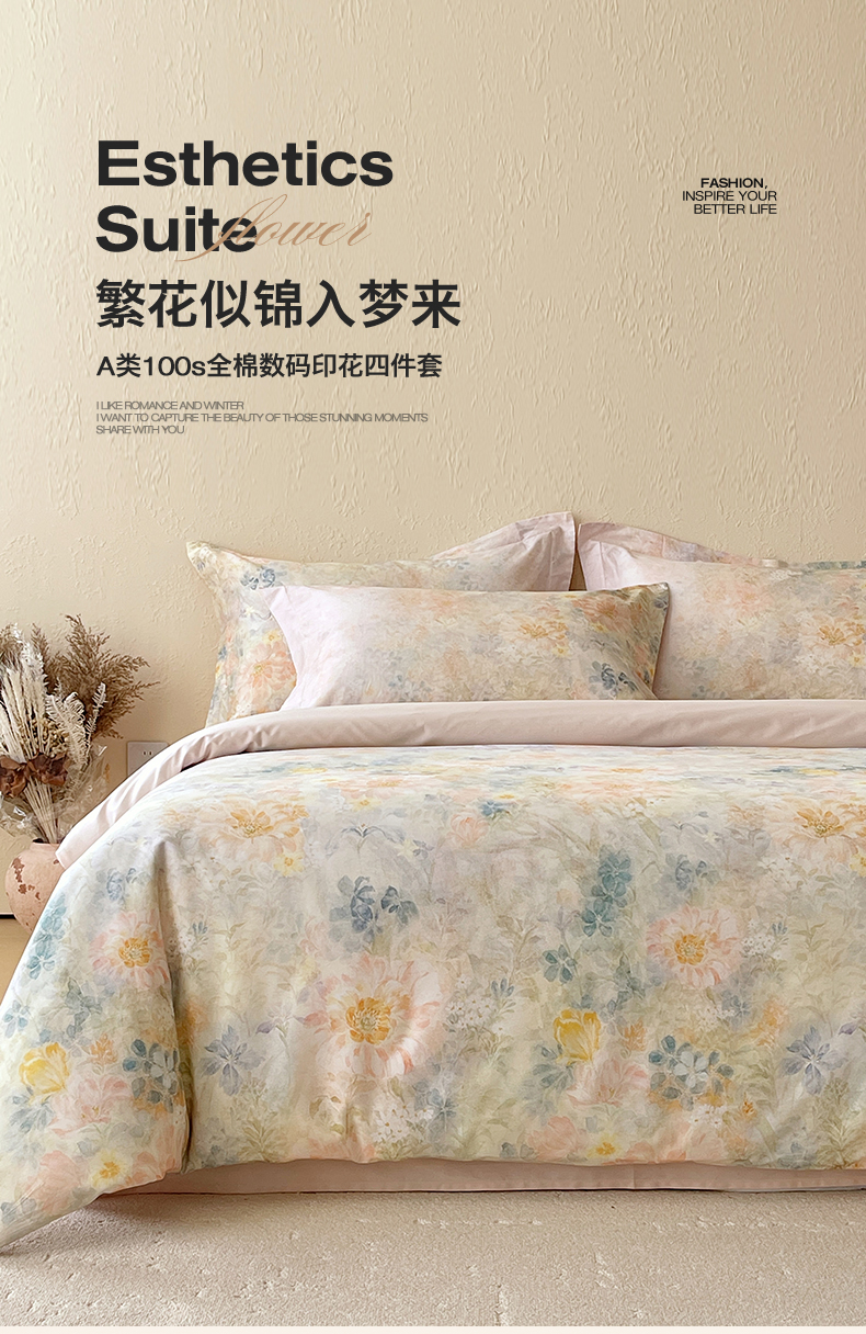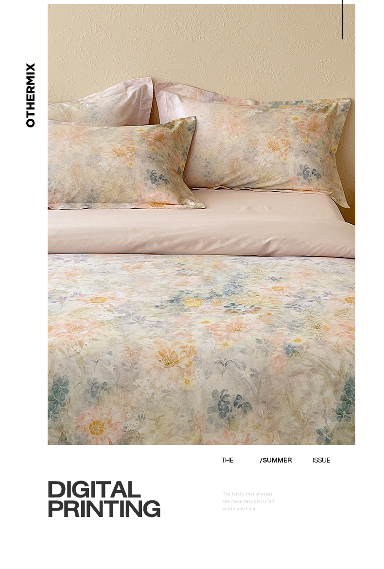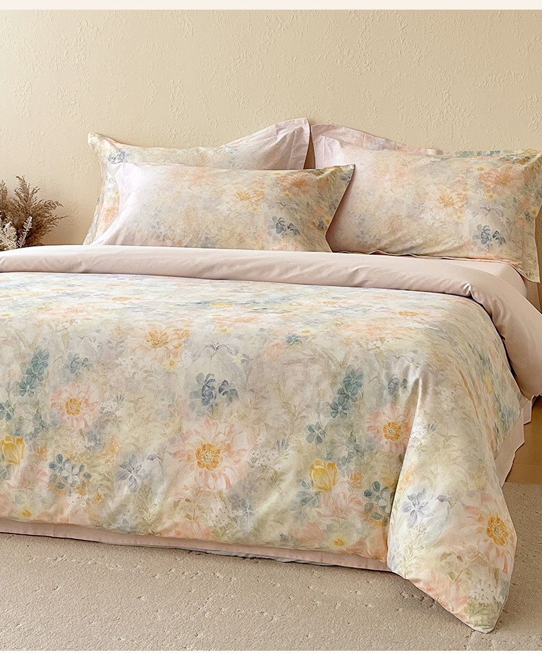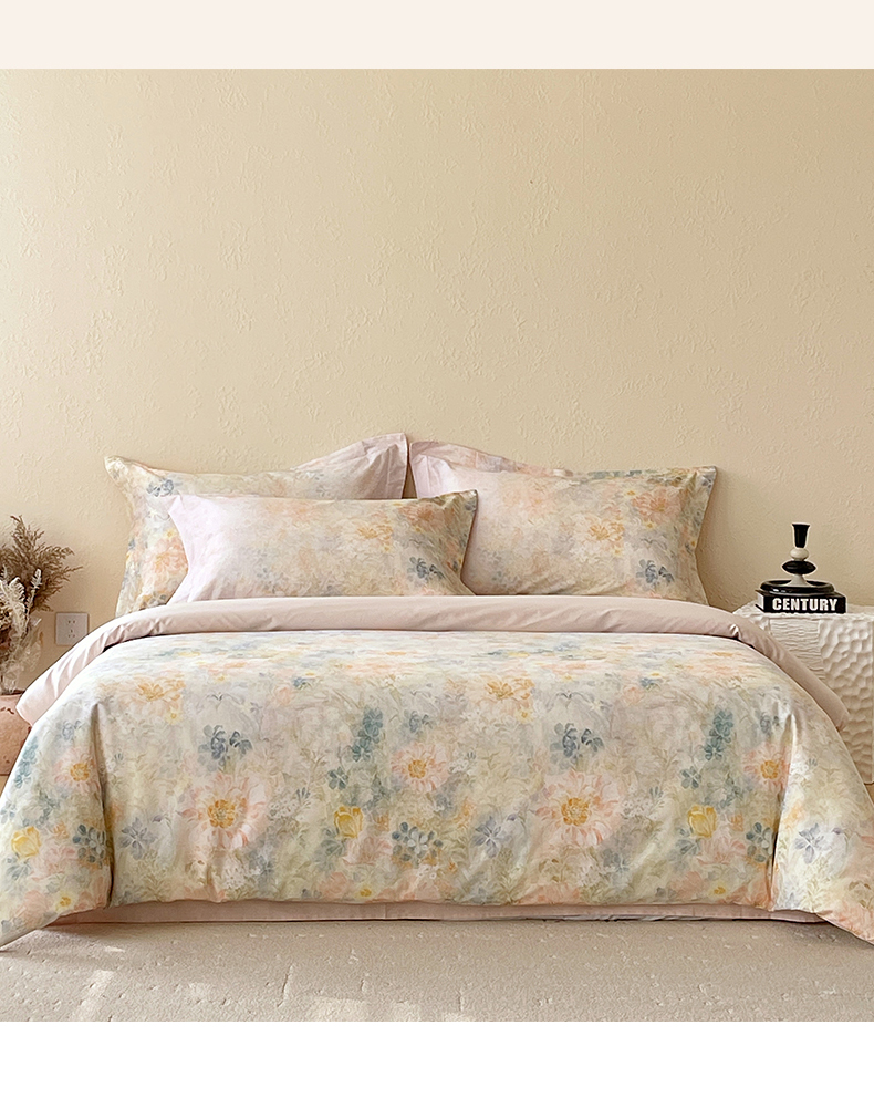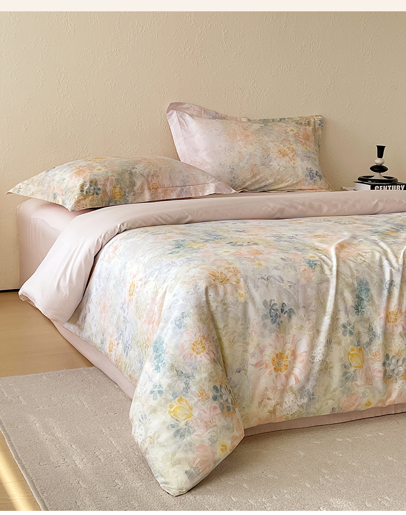 鼎飞家纺 2026新款100S长绒棉数码印花四件套-春日序 春日序-粉
