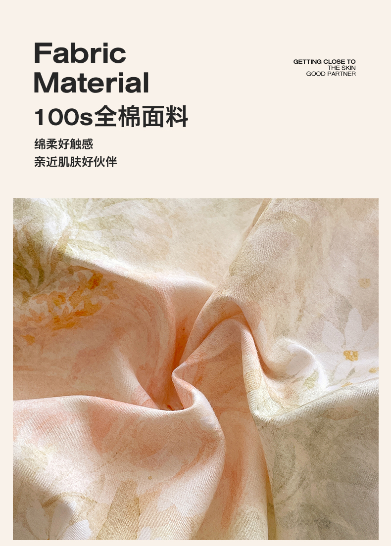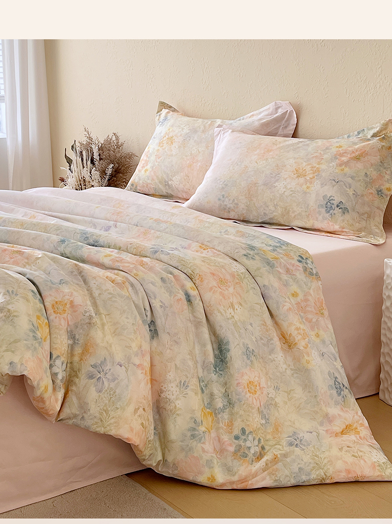 商品名称:鼎飞家纺 2026新款100S长绒棉数码印花四件套-春日序 春日序-粉