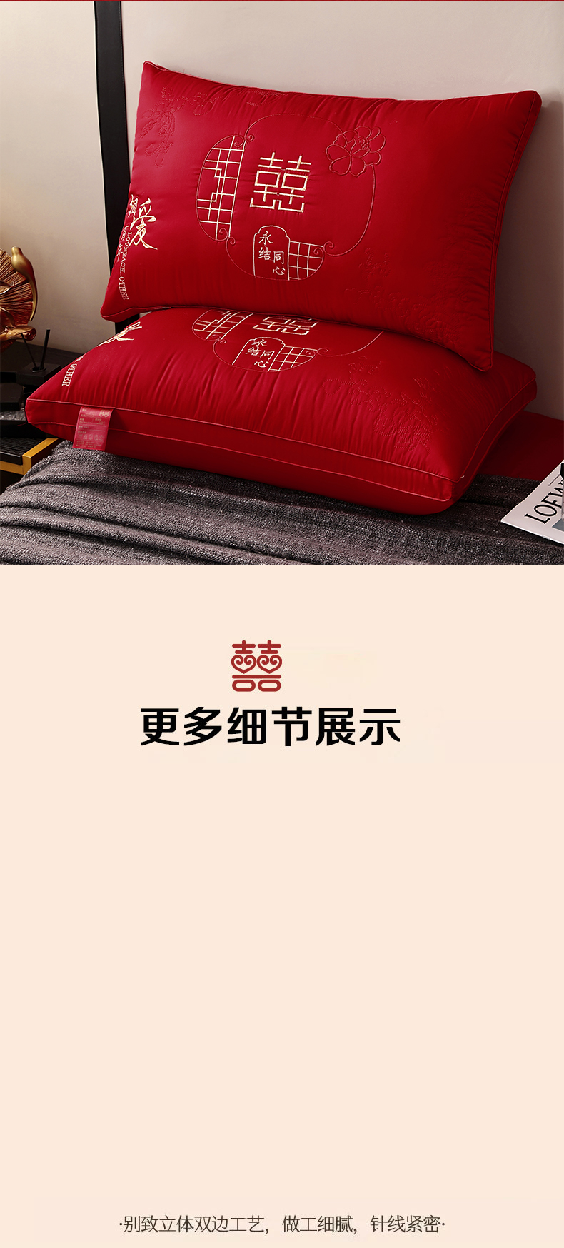 (总)糖果枕芯 2025新款婚庆枕芯新中式福禄绣花护颈枕,福禄护颈枕