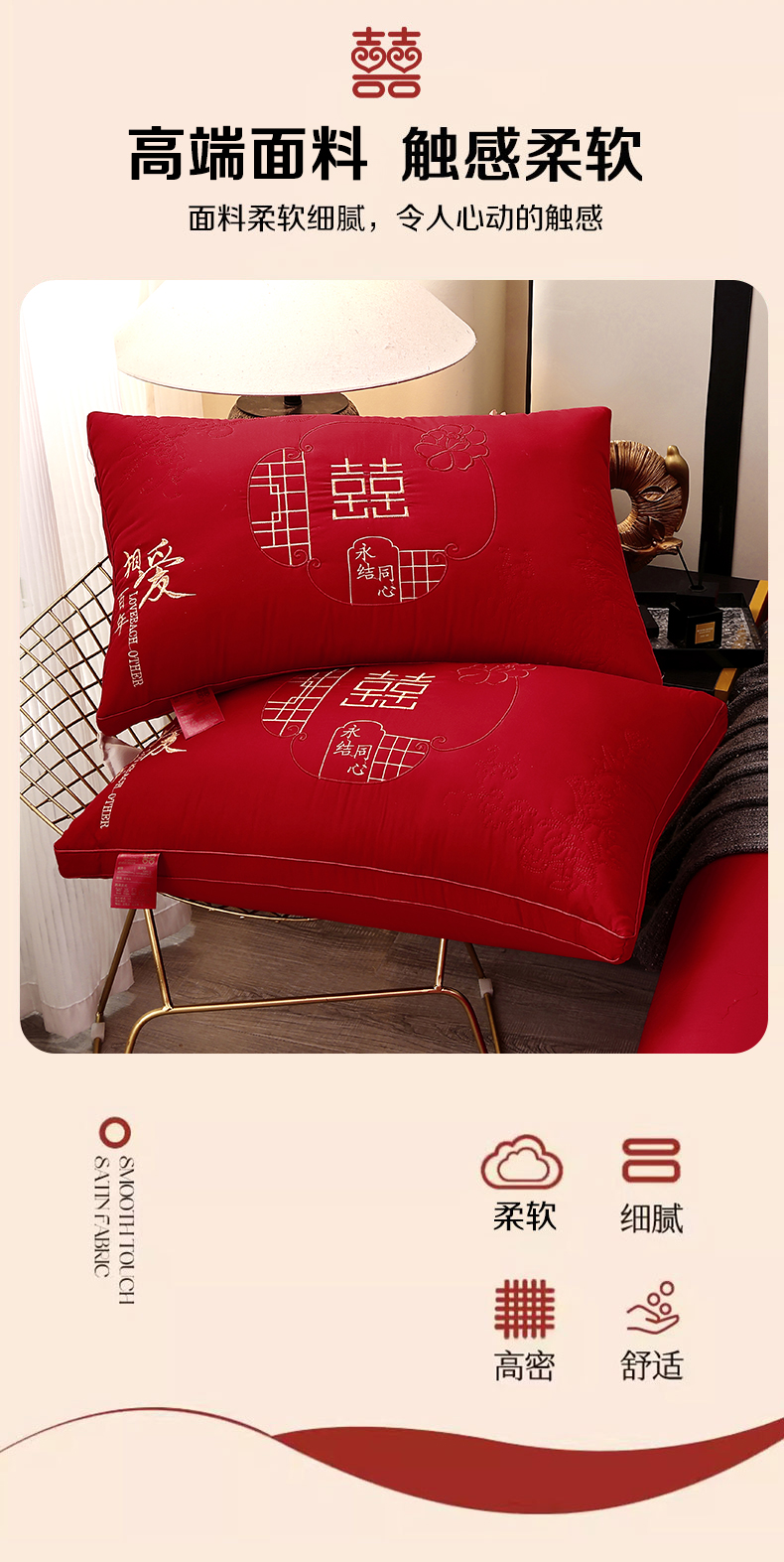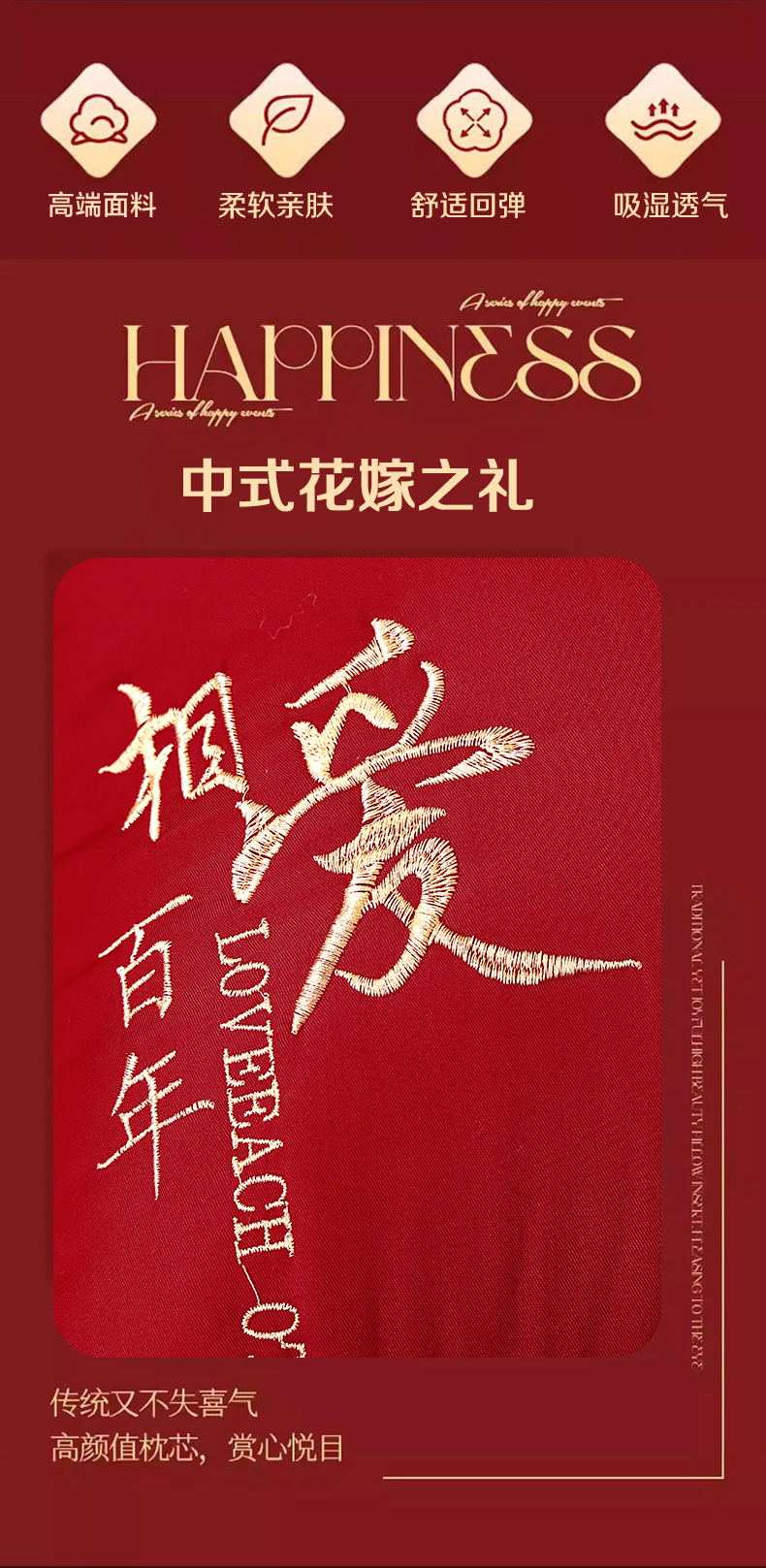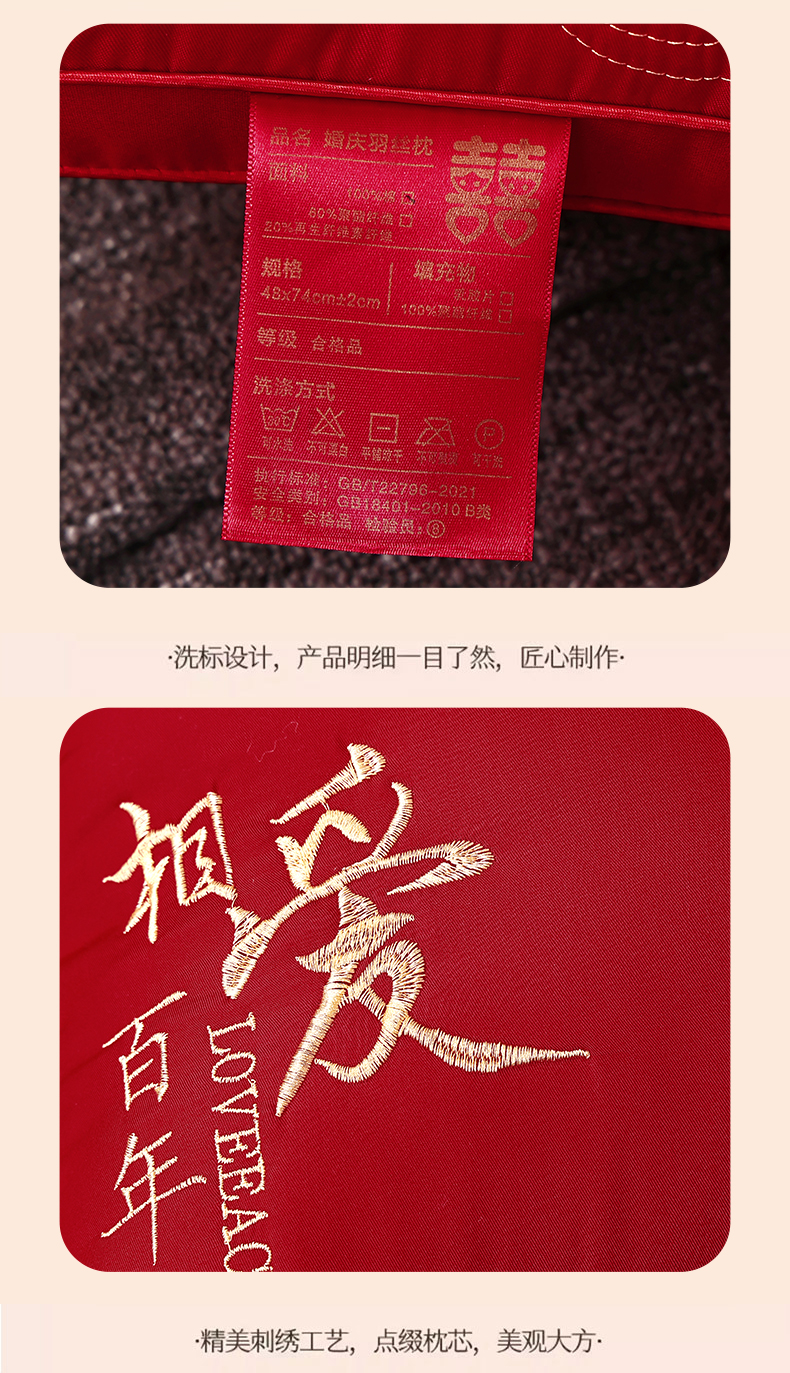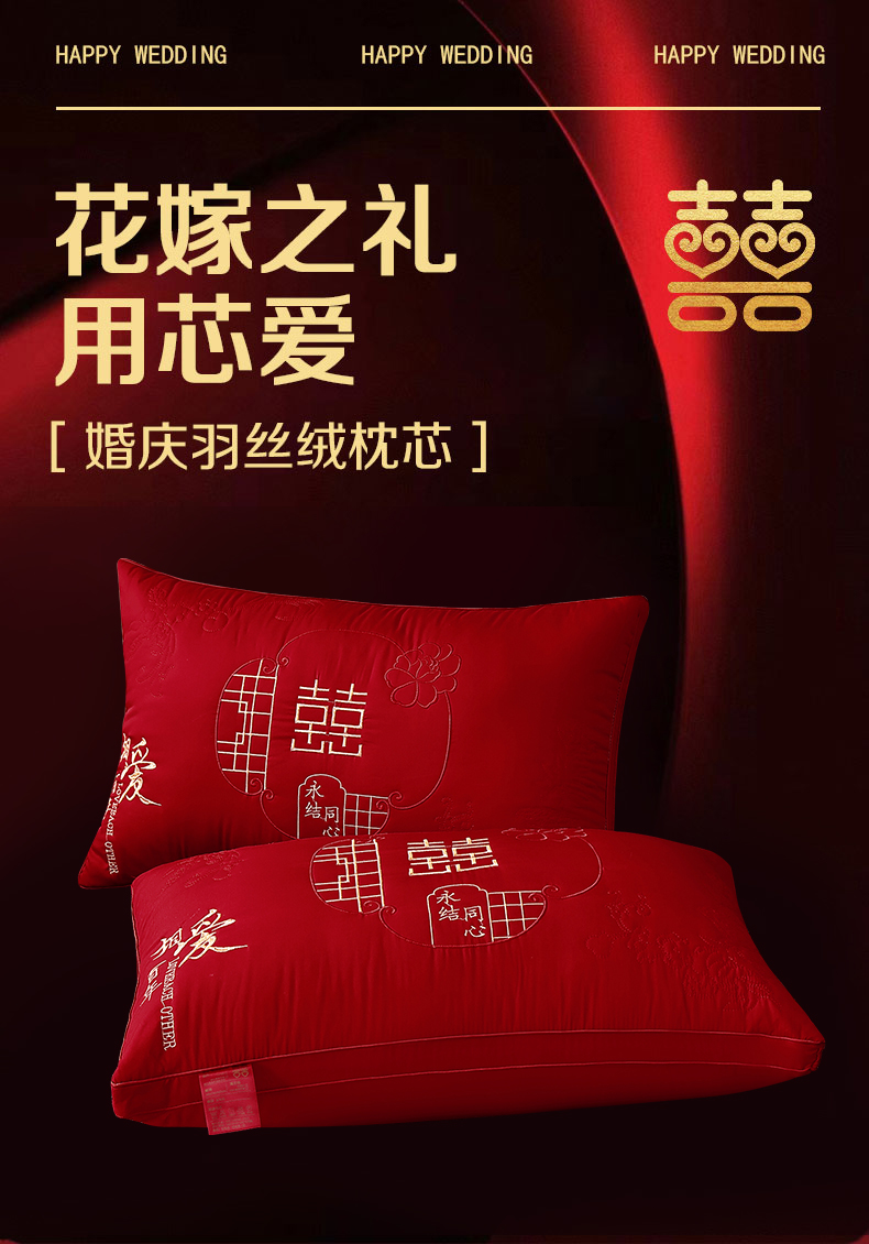 商品名称:糖果枕芯 2026新款婚庆结婚大红枕芯喜庆婚庆新人新娘新郎结婚专用枕芯 相爱百年