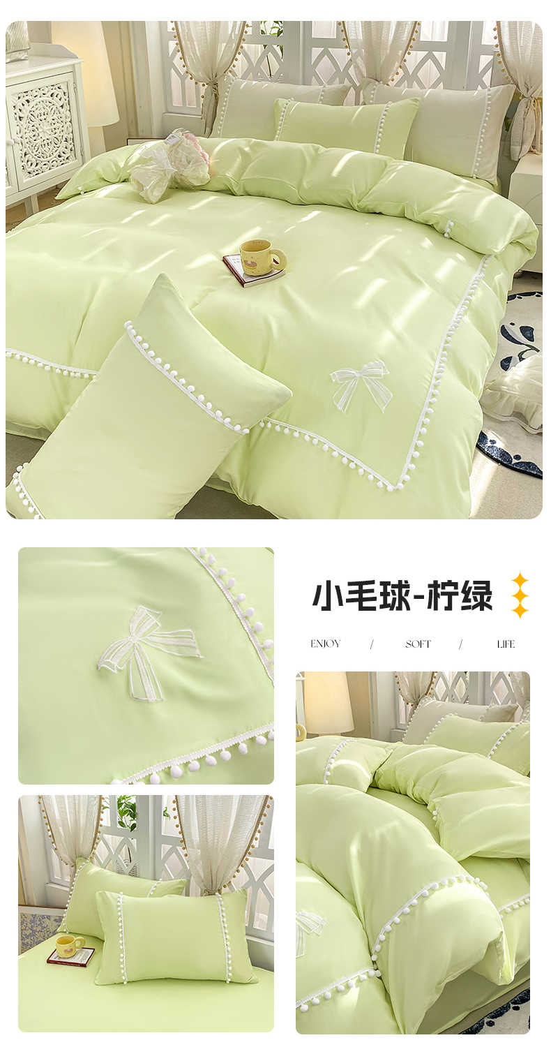 (总)七七家纺 2026新款亲肤舒适小毛球牛奶绒四件套,鹅黄,浅紫,水绿,粉玉,天蓝
