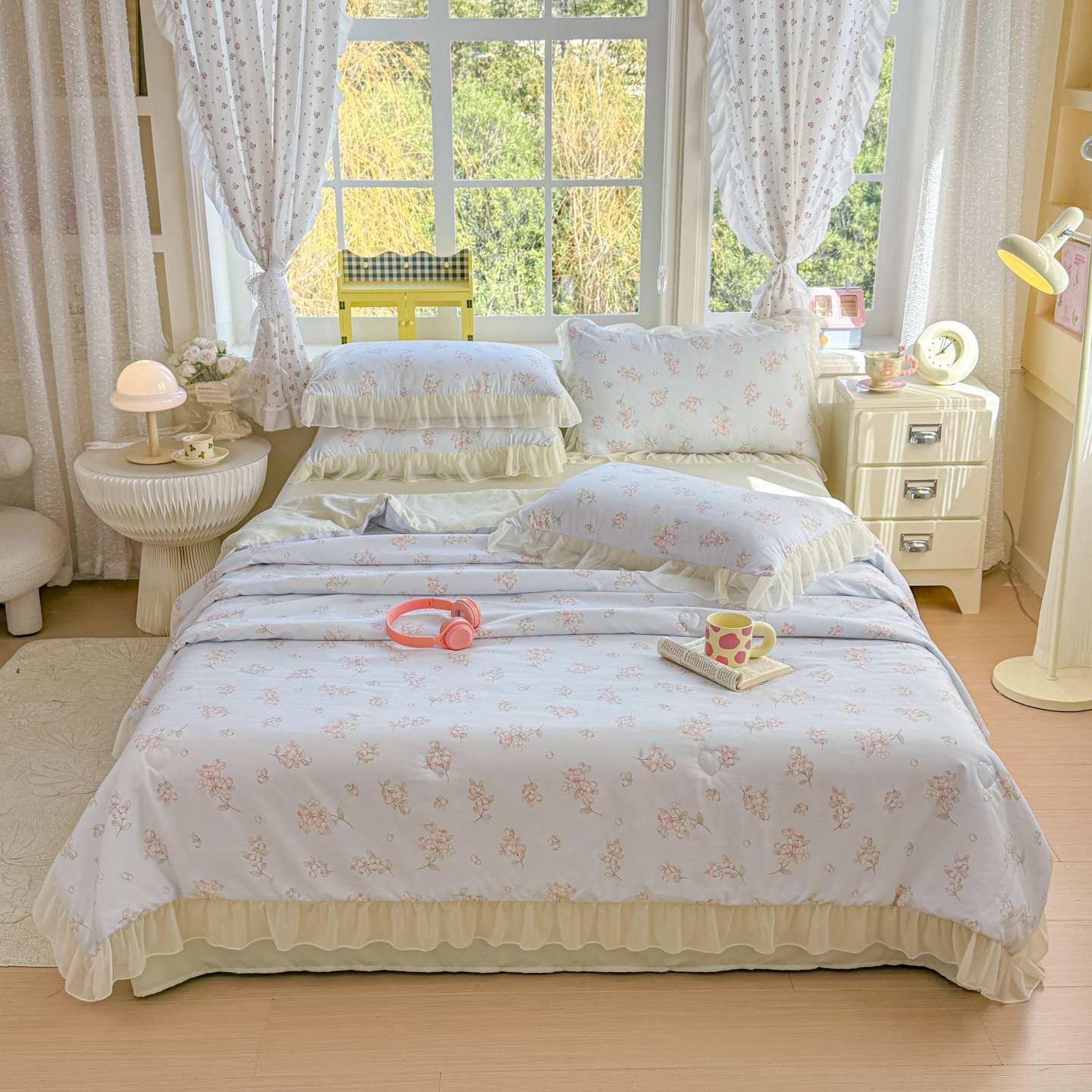 (总)赛丽雅 2026新款美人纱法式花边夏被四件套凉感冰丝提花单双人夏被系列夏凉被空调被,春也,朵朵,花楹,柠绿,恬梦,紫影