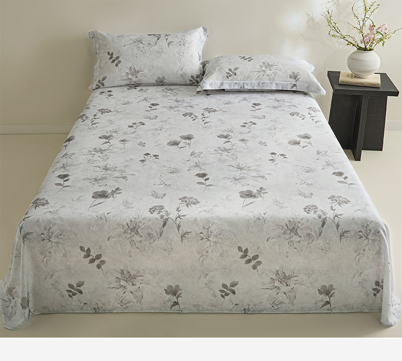 • 91家纺网 家纺一手货源 找家纺 禾时 2026春夏新款50s莱赛尔天丝床单三件套床单单件 陶然(灰)