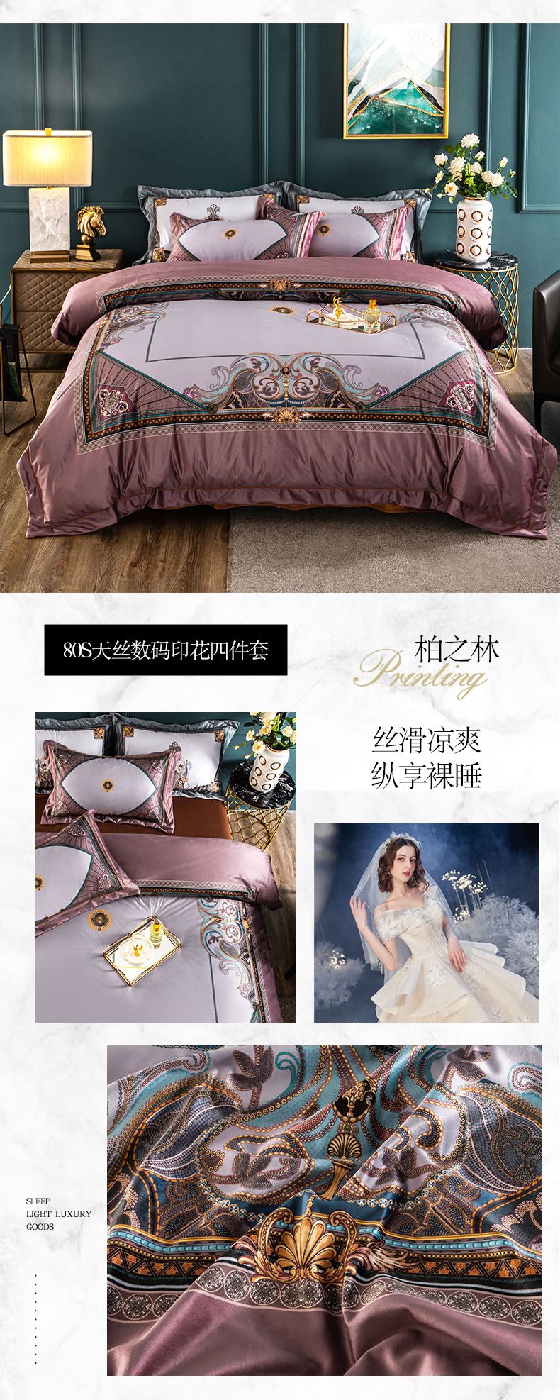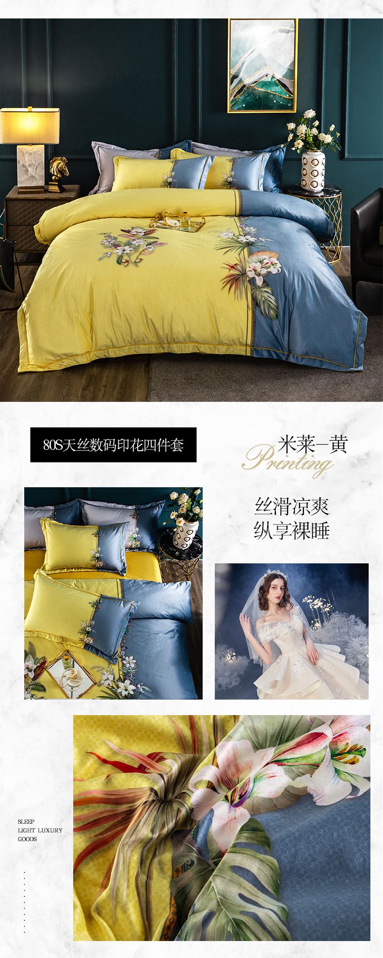 商品名称:梵克保罗 2026新款水洗仿天丝数码凉感丝四件套 米莱-黄