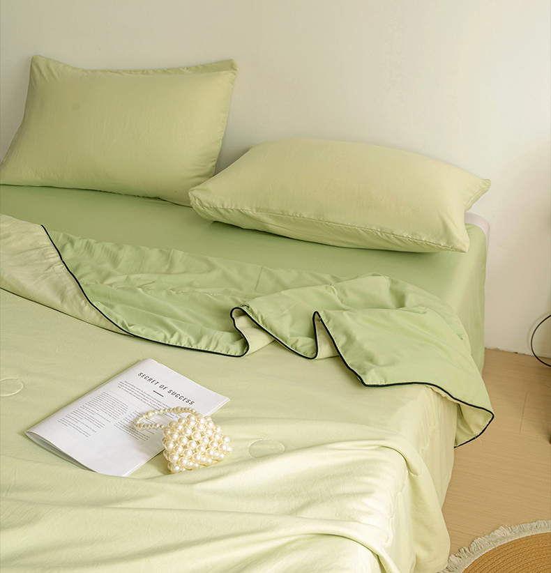 (总)易展家居 2025年新款水洗棉纯色夏被,薄荷绿,典雅白,高级灰,樱花粉