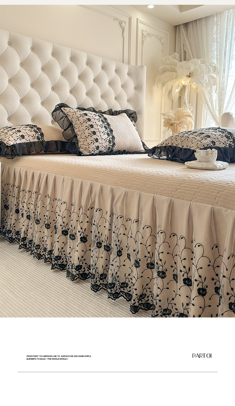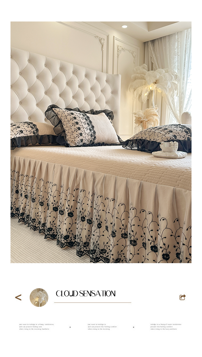(总)瑞宝 2026新款泡芙棉花边床裙三件套-南法玫瑰