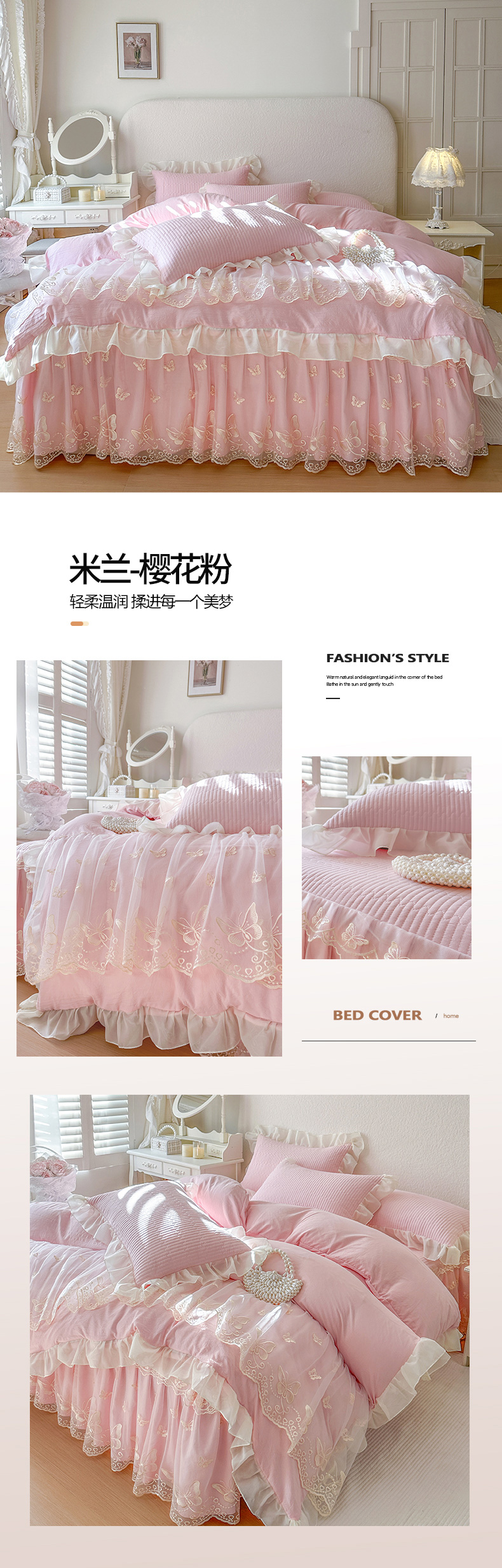 (总)瑞宝 2026新款泡芙棉花边床裙三件套-南法玫瑰,南法玫瑰-粉玉,南法玫瑰-雾蓝,南法玫瑰-奶茶色,南法玫瑰-奶油白,南法玫瑰-樱花粉,南法玫瑰-高级米,南法玫瑰-梦幻紫,南法玫瑰-抹茶绿