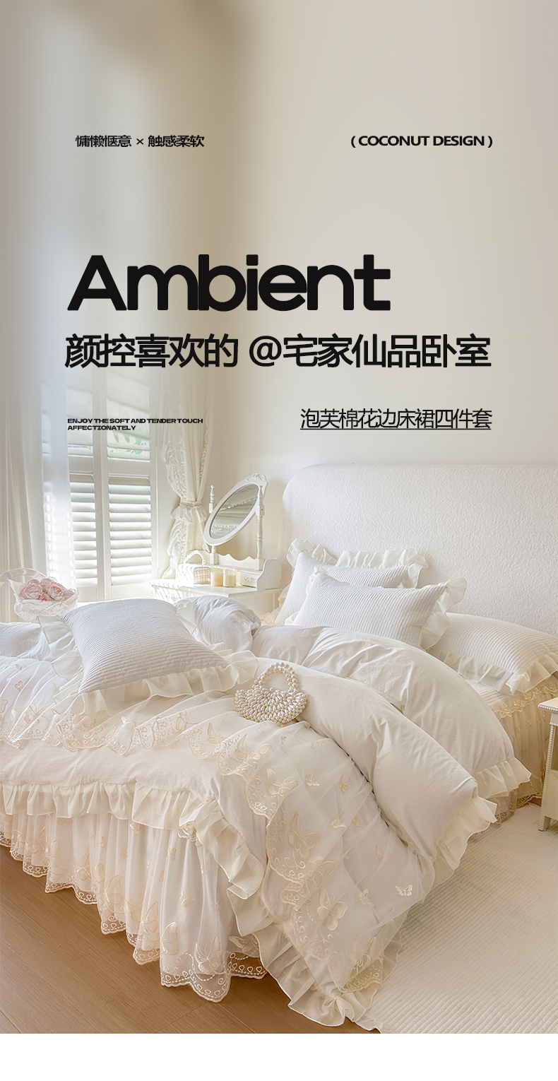 (总)瑞宝 2026新款泡芙棉花边床裙三件套-栀子海,栀子海-茶绿,栀子海-高级米,栀子海-粉樱,栀子海-奶咖,栀子海-柔白,栀子海-天蓝,栀子海-玉色,栀子海-紫色
