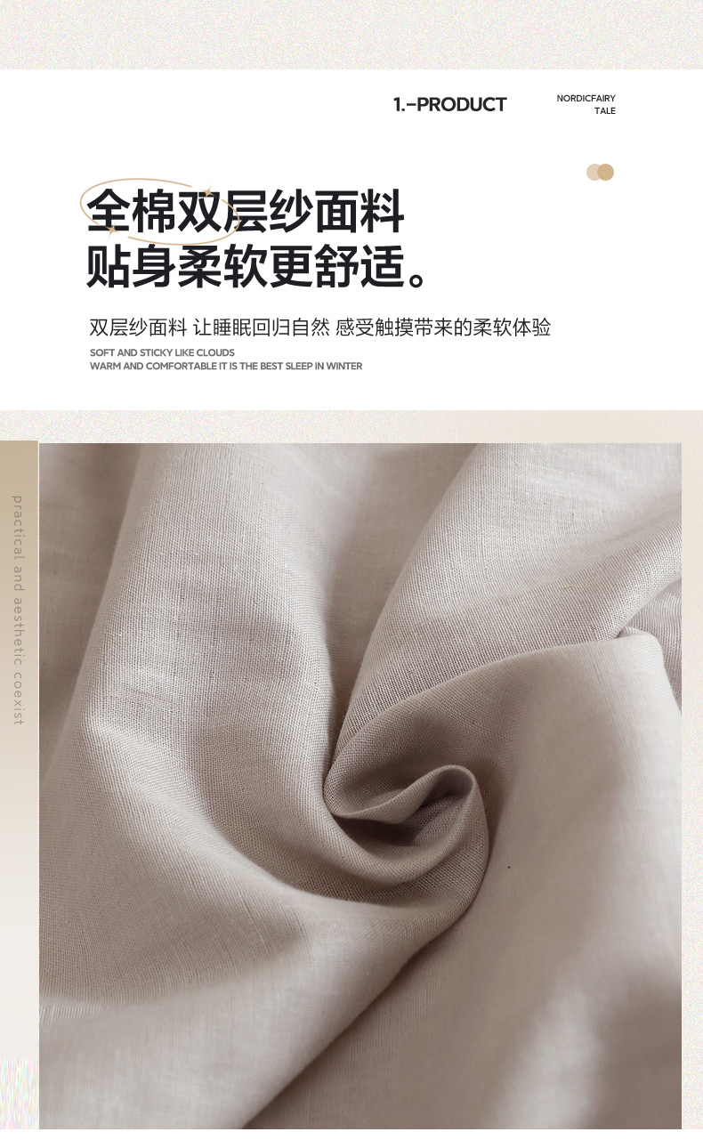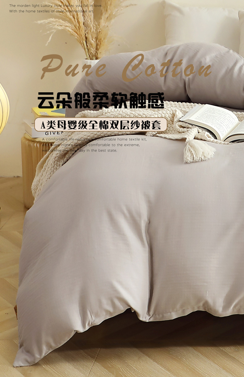 • 91家纺网 家纺一手货源 找家纺 晶缦家纺 2026新款纯棉纯色A类全棉双层纱单品被套被套单件单被套(水洗预处理)-觅琳系列 觅琳-暖藕灰