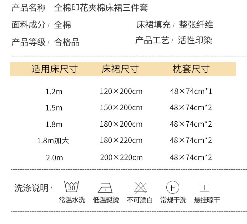 床裙120*200 枕套48*74*1 | ¥115.00 |