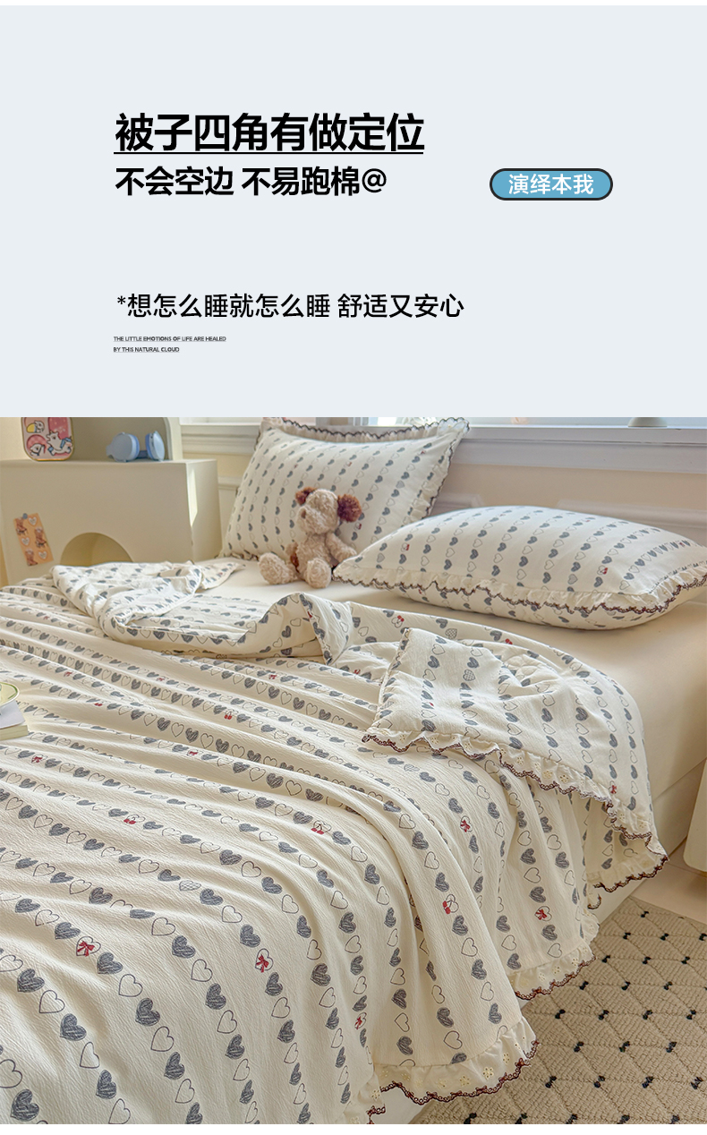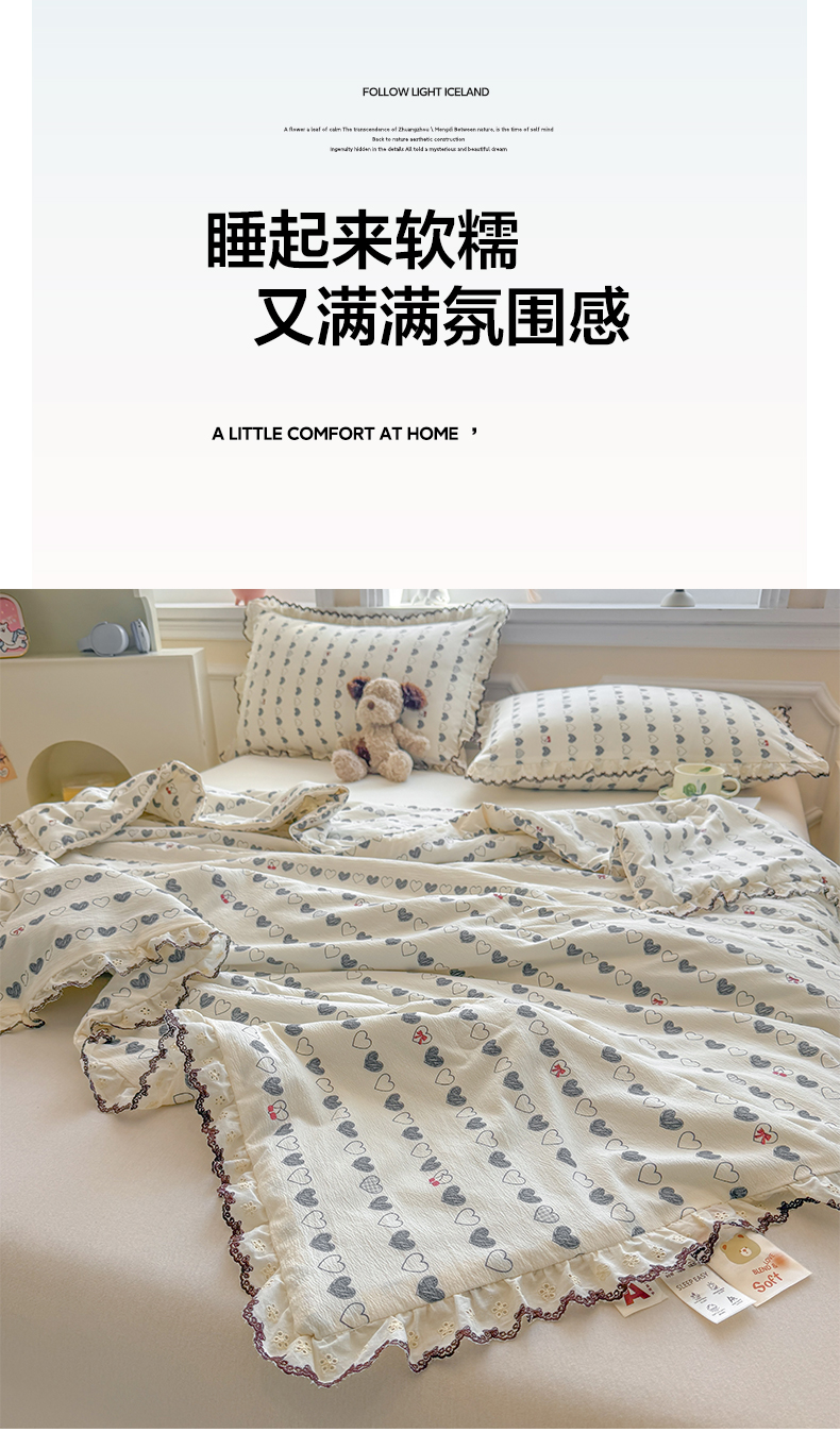 (总)鑫贝阳 2026新款韩版花边邹邹绵夏被,爱心格,薄荷小森林,马卡龙爱心,蘑菇小森林,奶雾花野,碎碎小碎花