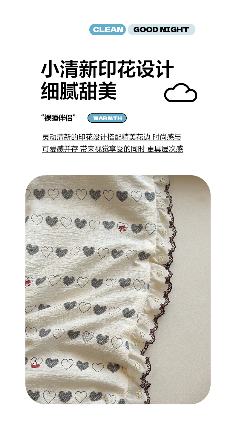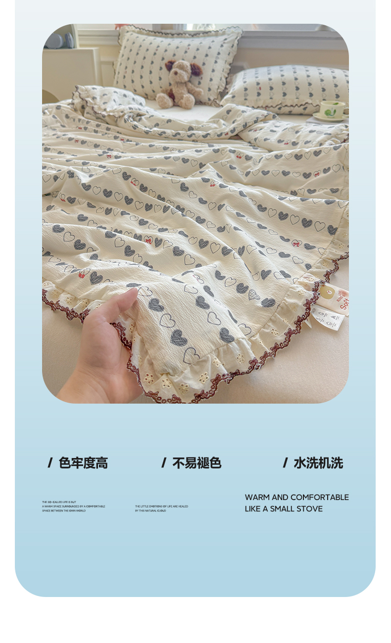 商品名称:鑫贝阳 2026新款韩版花边邹邹绵夏被 爱心格