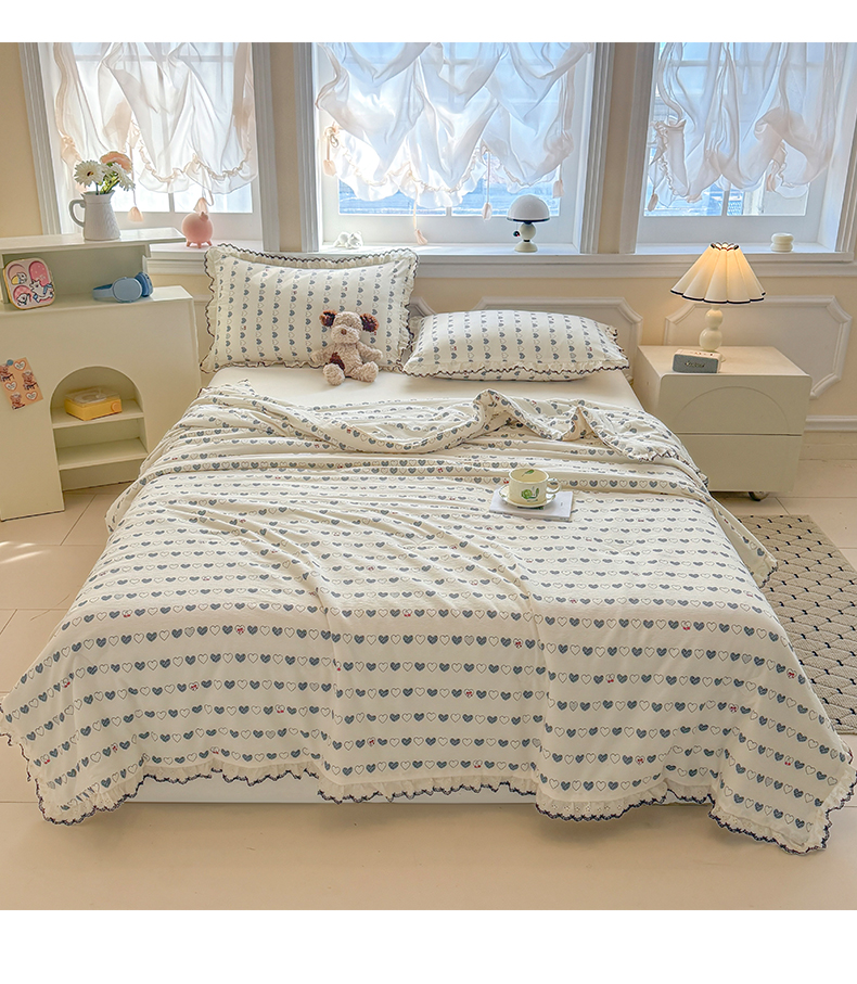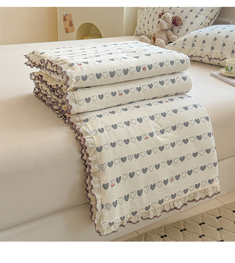 鑫贝阳 2026新款韩版花边邹邹绵夏被 爱心格