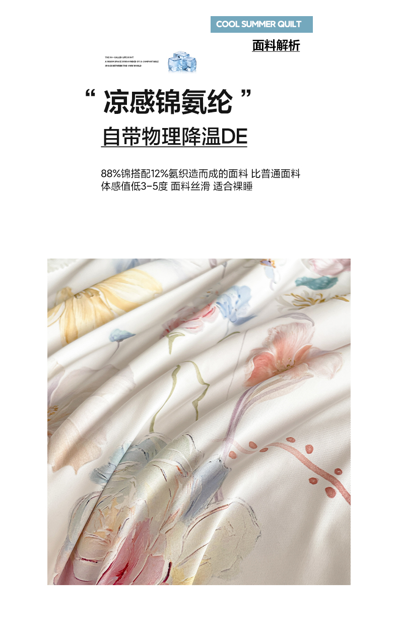 商品名称:鑫贝阳 2026新款锦氨凉感丝夏被 玫瑰庄园白
